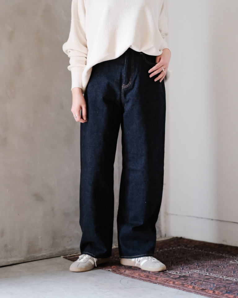 14-13W デニムワイドストレート(フルレングス) col.Indigo