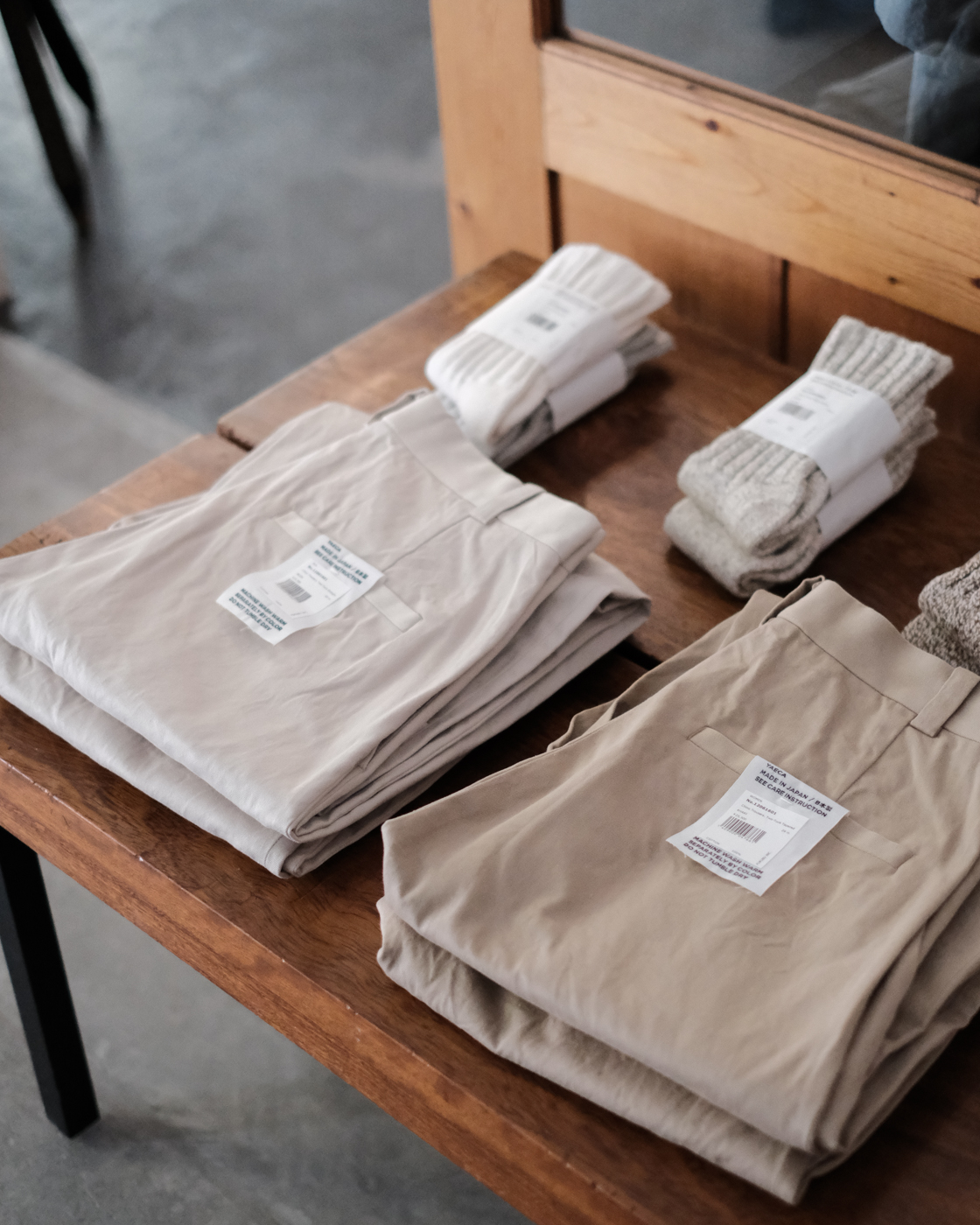 会期中は春夏の新作と共に、これまで作り続けているシャツ、チノなど、