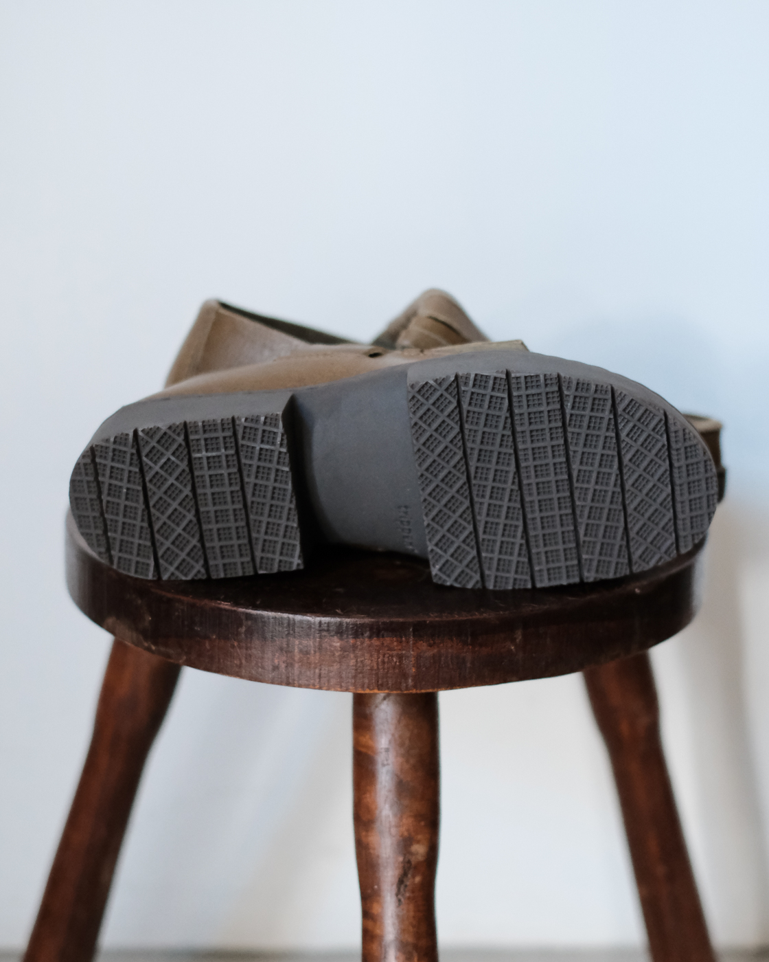 アッパーで使用した革の色に合わせて、ソールも柔らかいブラウンの色に。