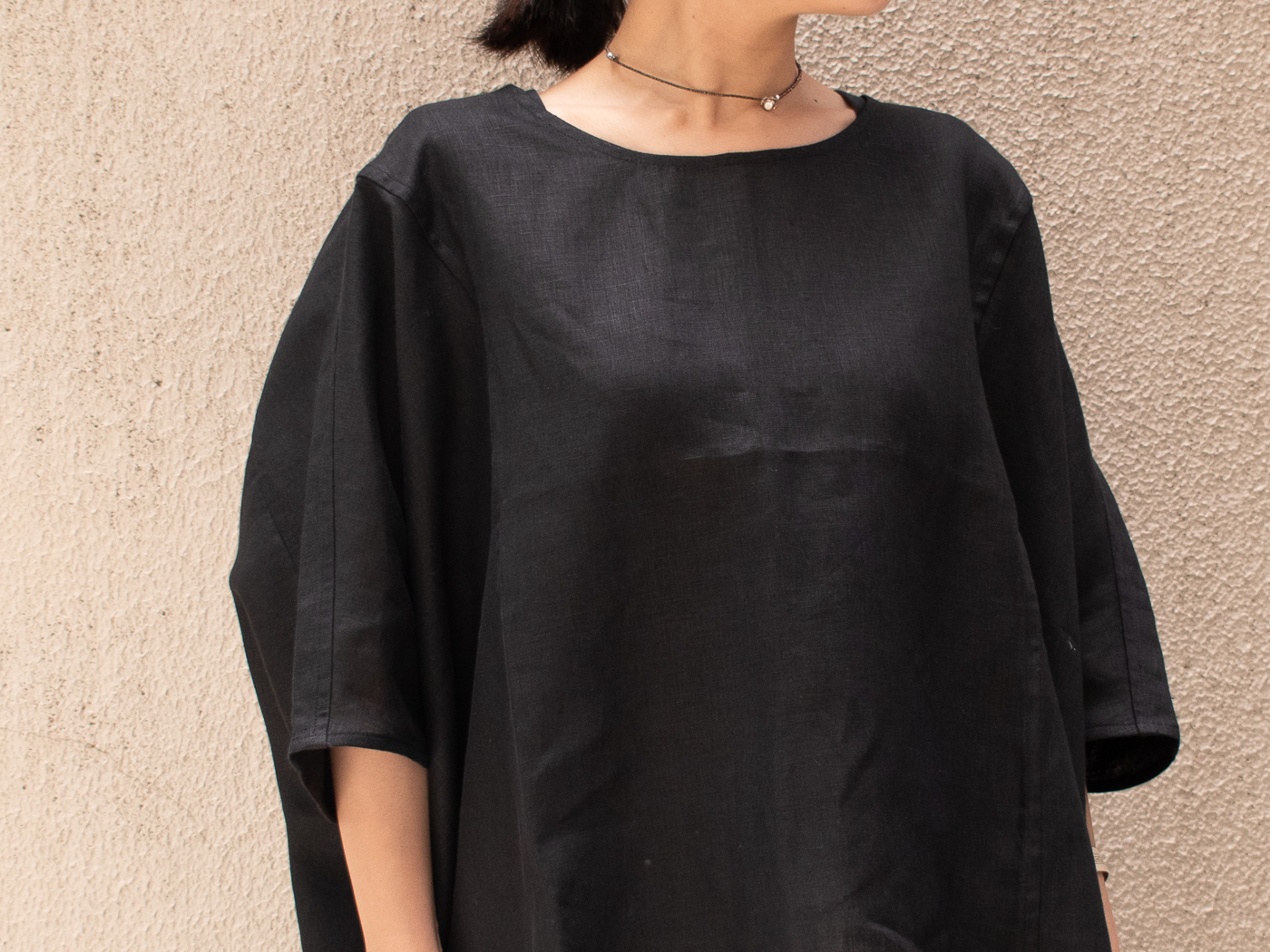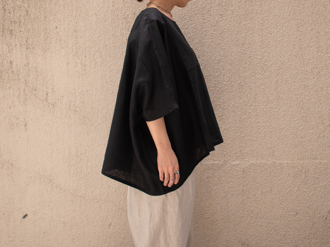 コットンやシルクに比べ、吸水・発散性に優れているため、水分や汗をすばやく吸収し、発散させる機能に優れており、リネンの中でも最高品質の素材として世界に広く知られている、大変上質な生地です。私も色違い、形違いを4枚程愛用しておりますが、この季節、本当手放せないんですよね。