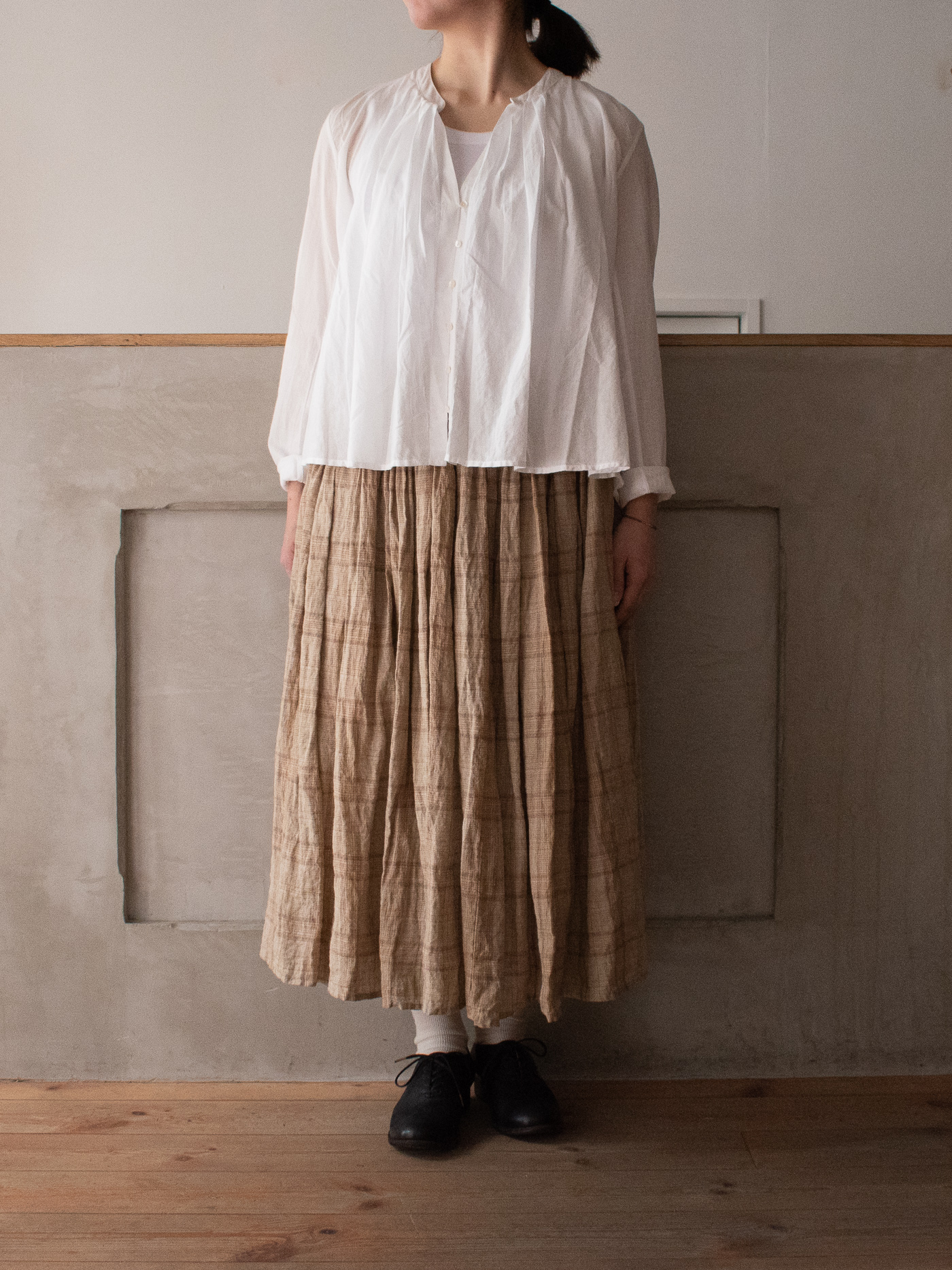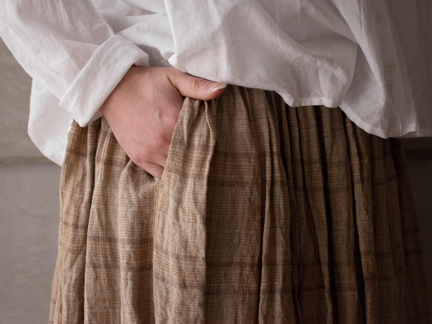ブログではスカートをご紹介。この生地が好きすぎて、ずっと店頭にあってほしい気持ちと、良さを共感して着ていただきたい気持ちが葛藤してます。