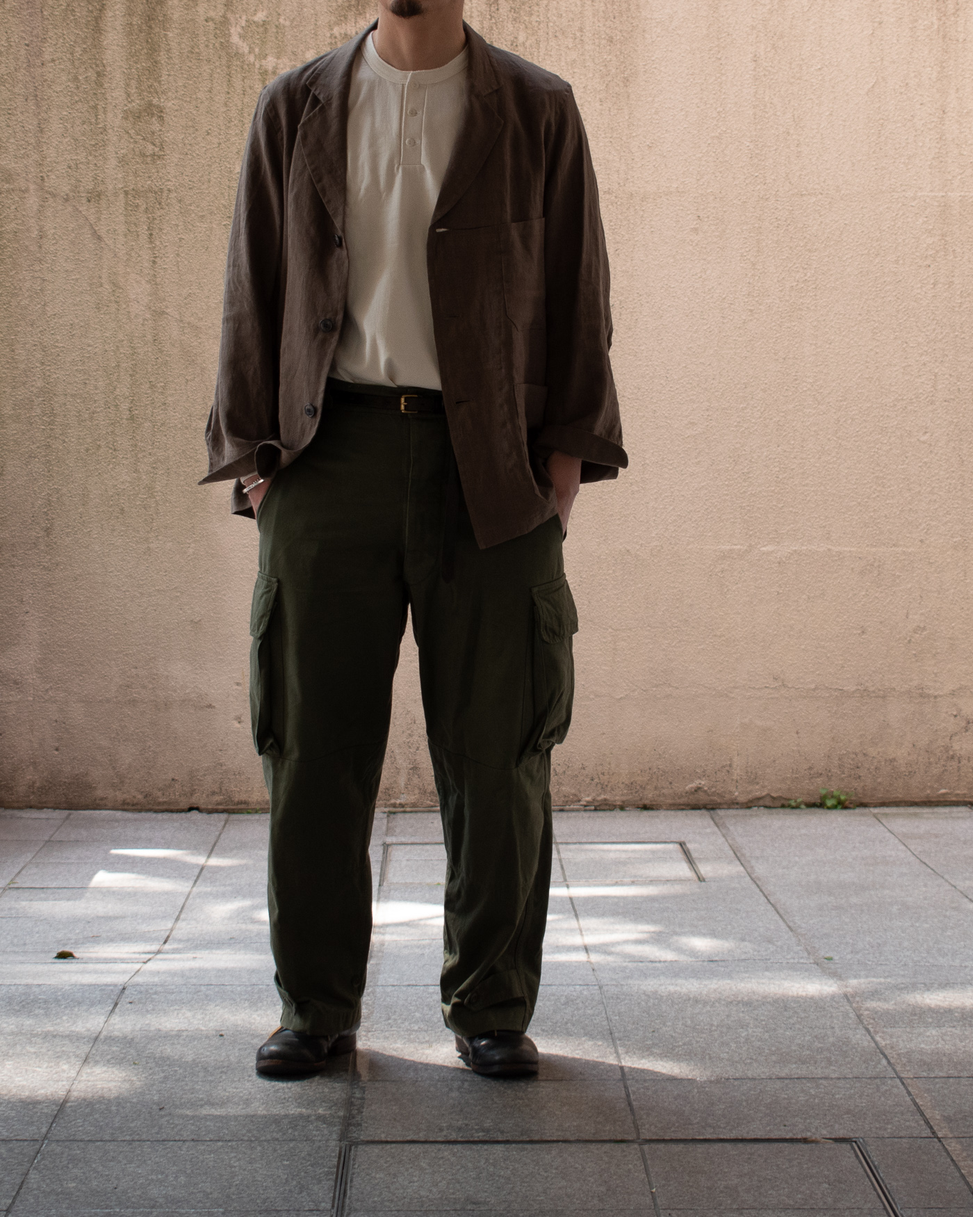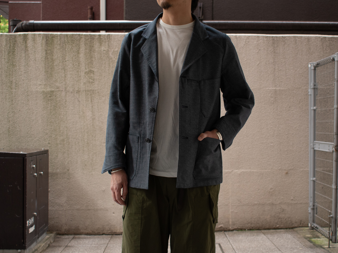 OLDMAN’S TAILORらしい、気品のある軍パンをセットアップで着るのも良いなあと思い、ジャケットの製作もお願いすることに。