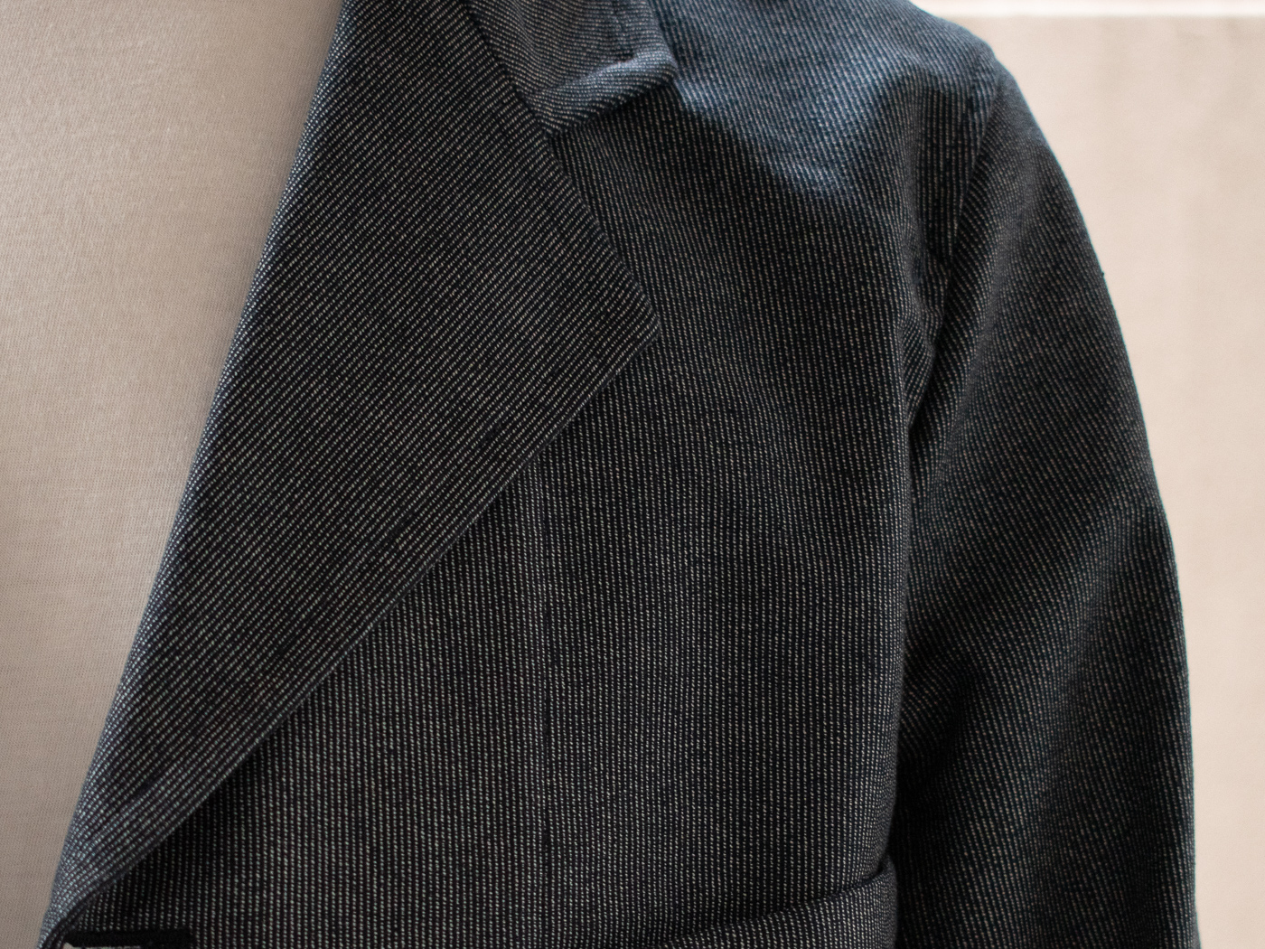ネイビーカラーでお願いするのは、もちろんすぐ決まったのですが、生地感をとても迷いました。無骨なキャンバス地も良いし、レディースと同じくウールリネン?とか。
