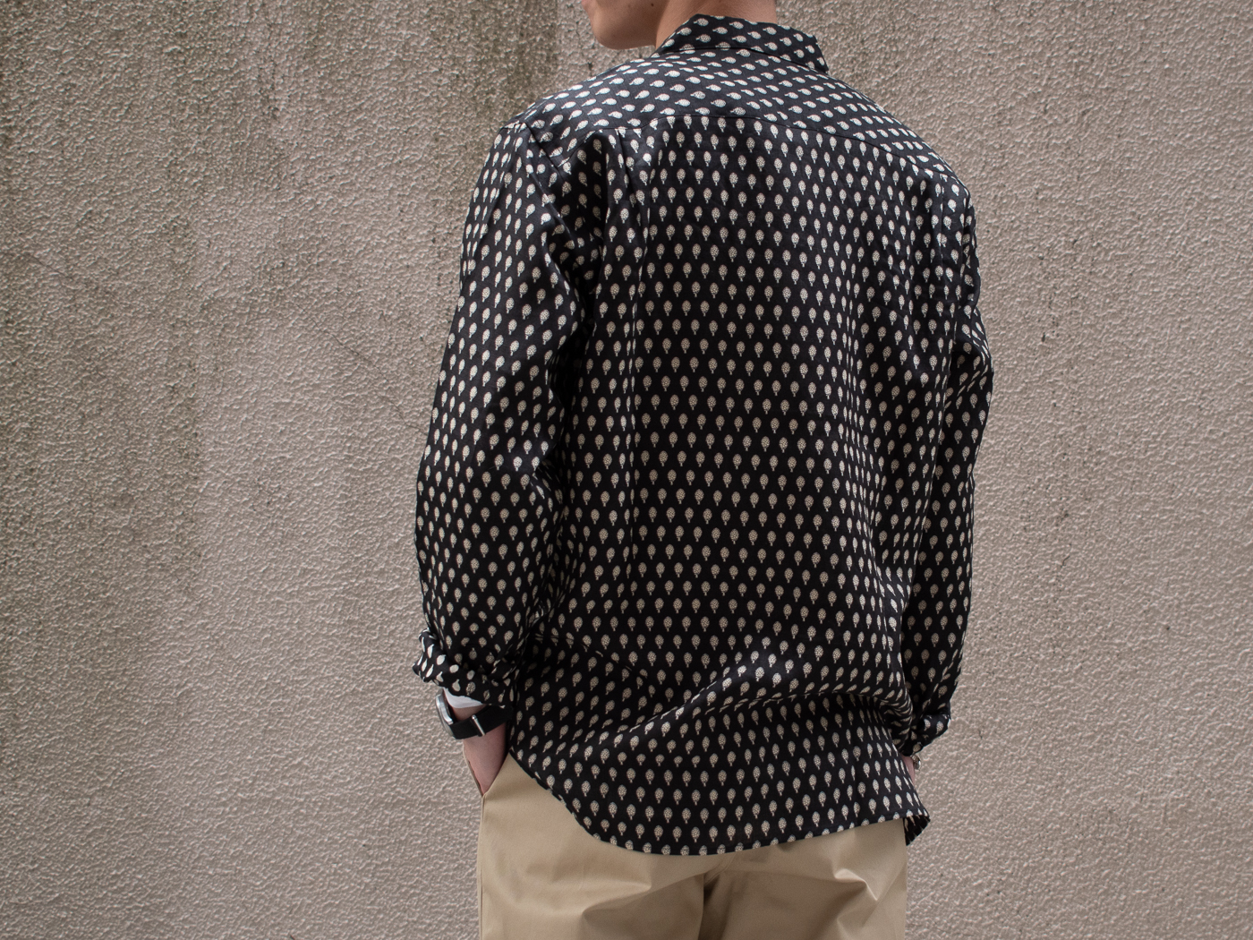 開襟シャツとジャケットのどちらにも見える優れものです。男性であれば手元にあってほしい2つのアイテム。