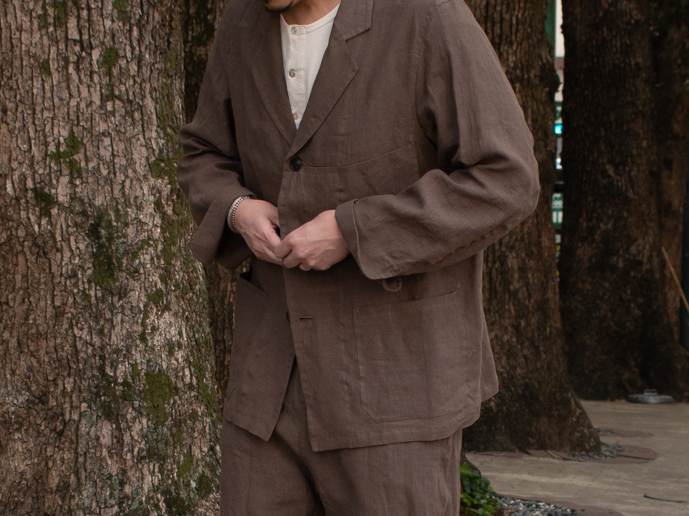良く見ると、リネン特有のネップ感やシワ感が浮かび上がり、この雰囲気に、色気や男らしさも足してくれます。味を楽しめるだけでなく、合わせるアイテム次第で、シーズン問わず永く愛用できるところも嬉しいポイント。