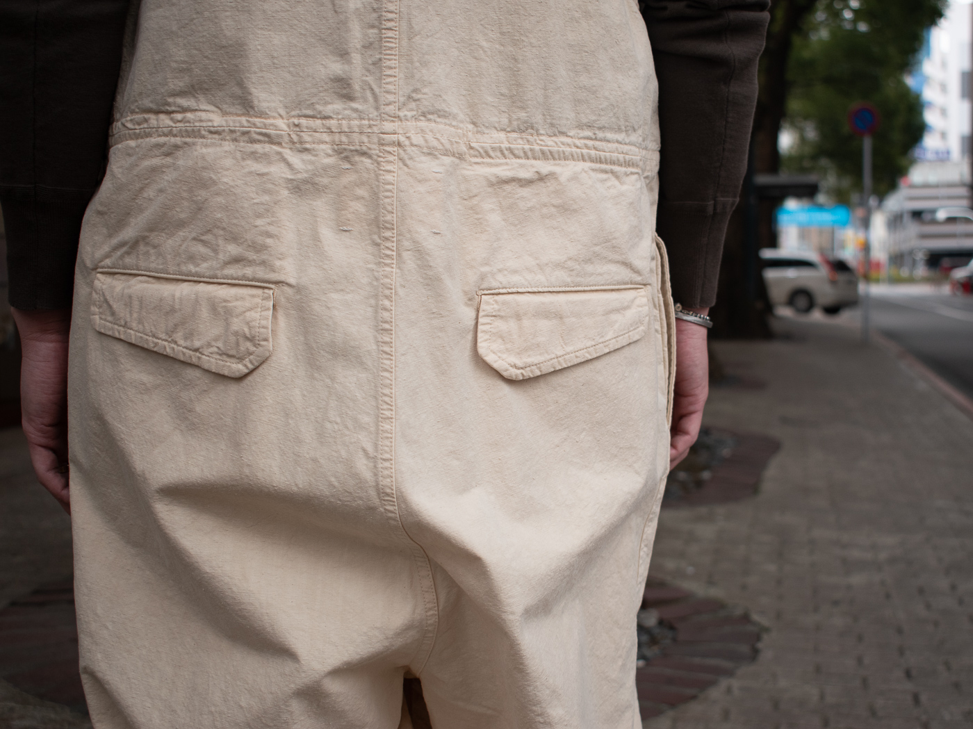 それだけでなく、着用していく事でヌメ革のように深い色合いに表情を変えていくという想像力を掻き立てる生地感。どの様に育て、どのような育っていくか、今から興奮がおさまりません。