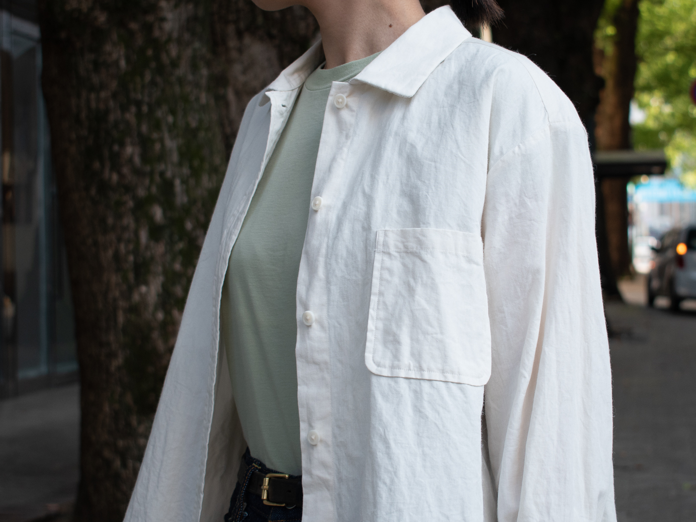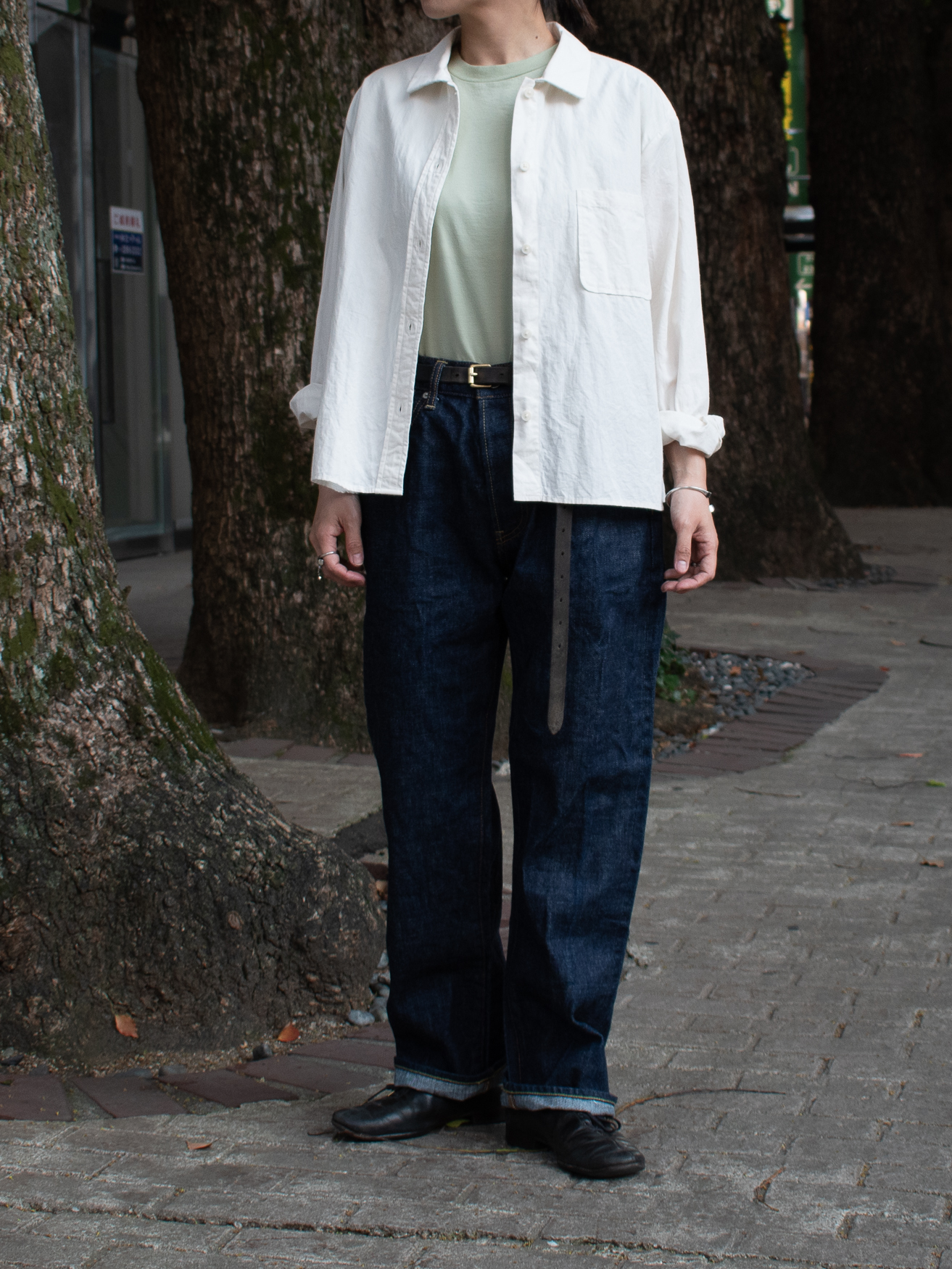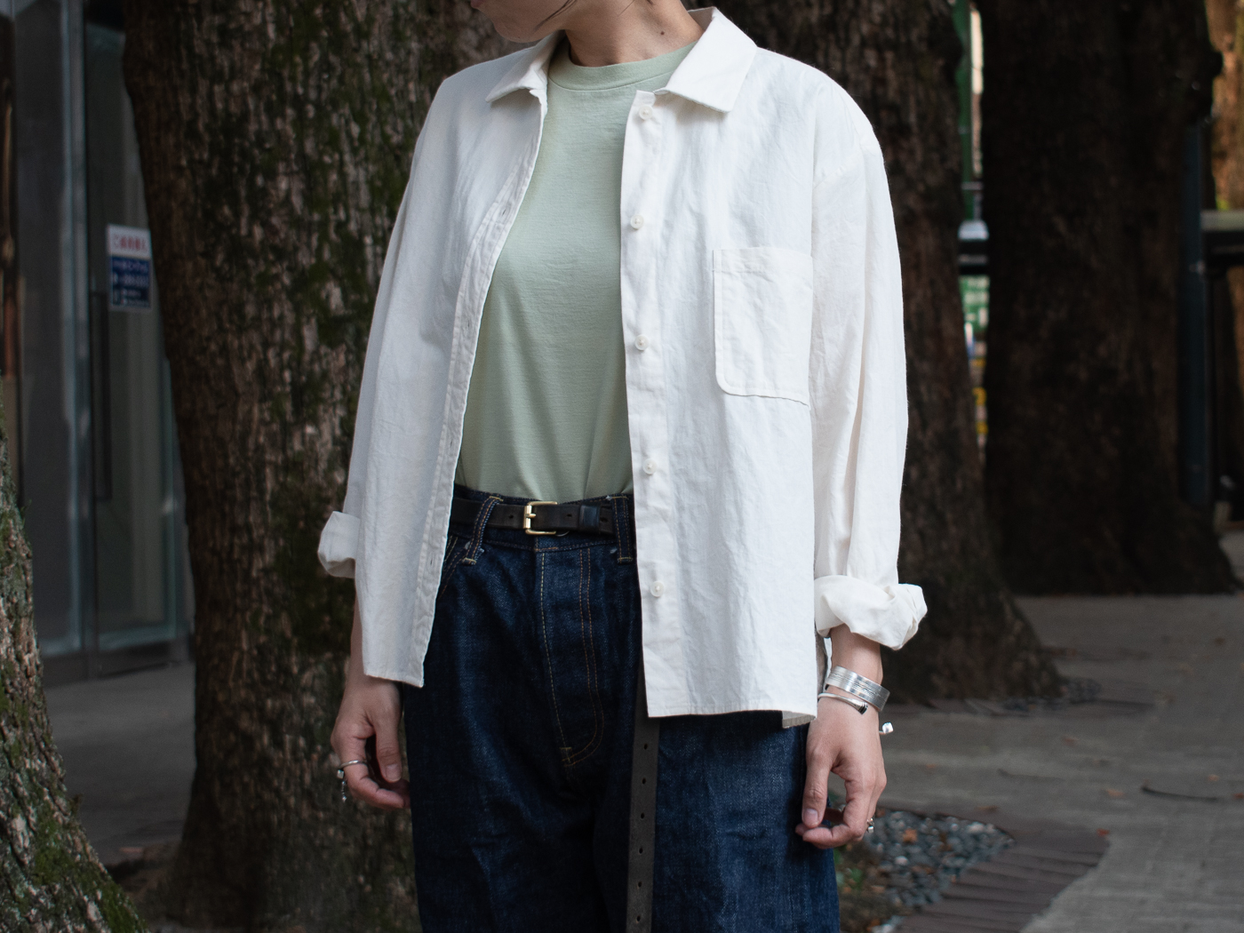 同じシャツでも、先程よりも大人の渋さが漂う一着です。この潔いシンプルさがとても好きだな。