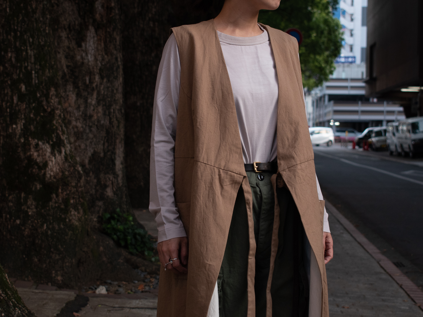 軍パンやワークアイテムはうちのレディーススタッフもみんな大好きなんですが、メンズライクという枠に収まらない空気をOUTILには感じています。女性の芯の強さというか、意志の固さみたいな事でしょうか。