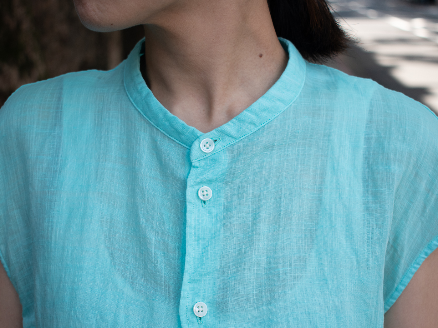 ゴーシュ / 100/1リネンコットン・ダイ フレンチスリーブシャツ col.Turquoise