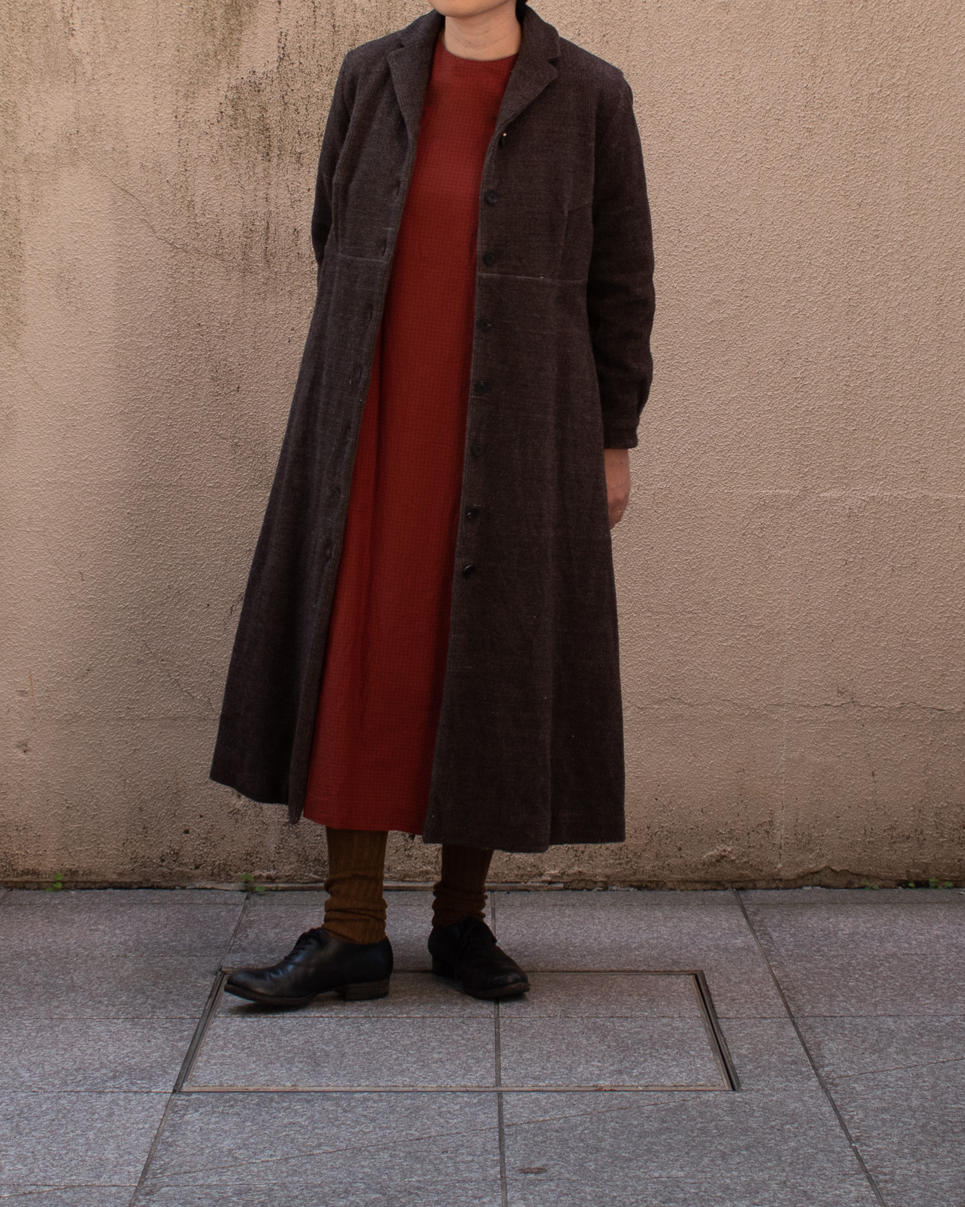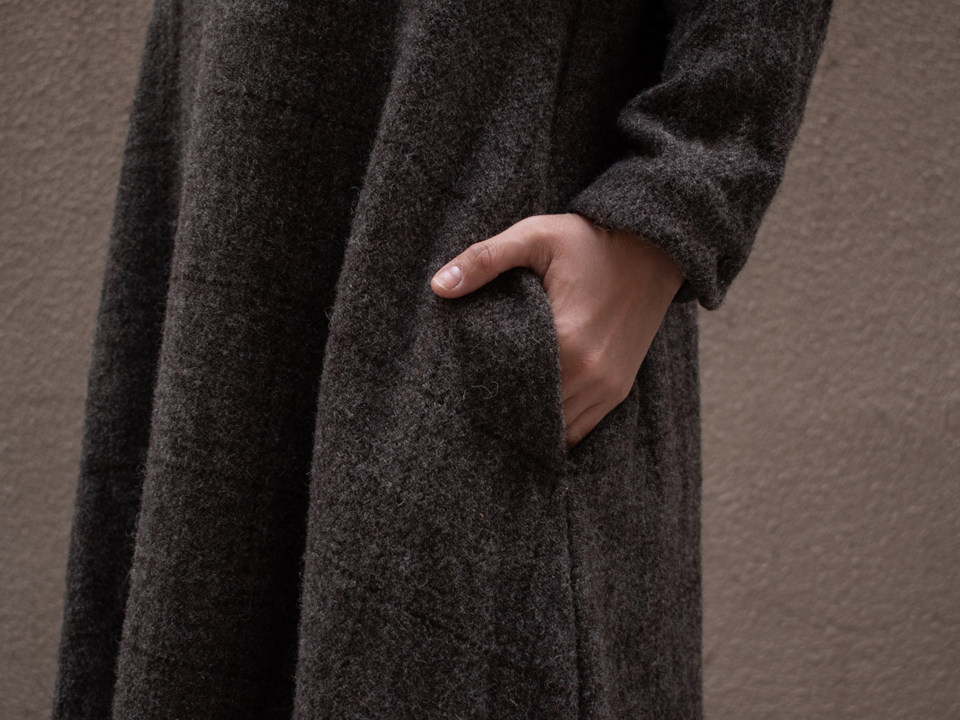 アウター感覚で着れるウールリネンの生地も今回は製作されています。いわゆるシャツ生地とは印象がまた違って良いです。