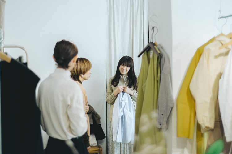 私もお客様との会話に耳を傾けながら、田仲さんの口から発せられる言葉に服作りに真摯に向き合っている思いが感じられ、その姿勢に感銘を受けました。きっと、皆様も同じように思いを受け取っていただいた事と思います。