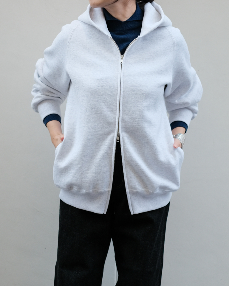 ブラッシュ吊裏毛 ダブルジップパーカー col.White