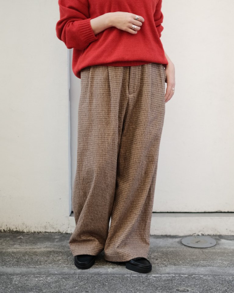 9W CORDUROY TUCK WIDE PANTS col.Brown