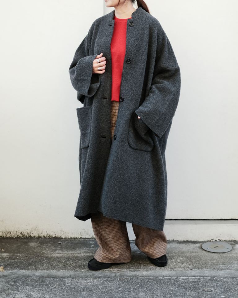 WOOL FELT OVERSIZE COAT col.Charcoal