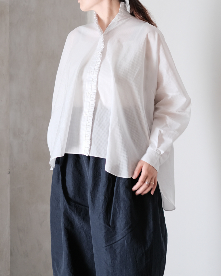 frill gather blouse col.White
