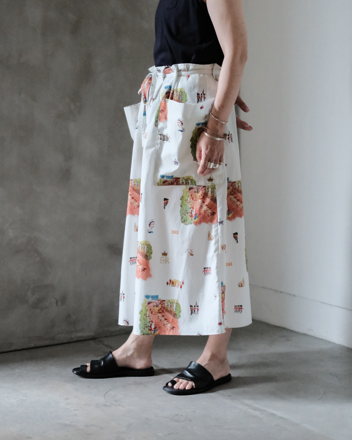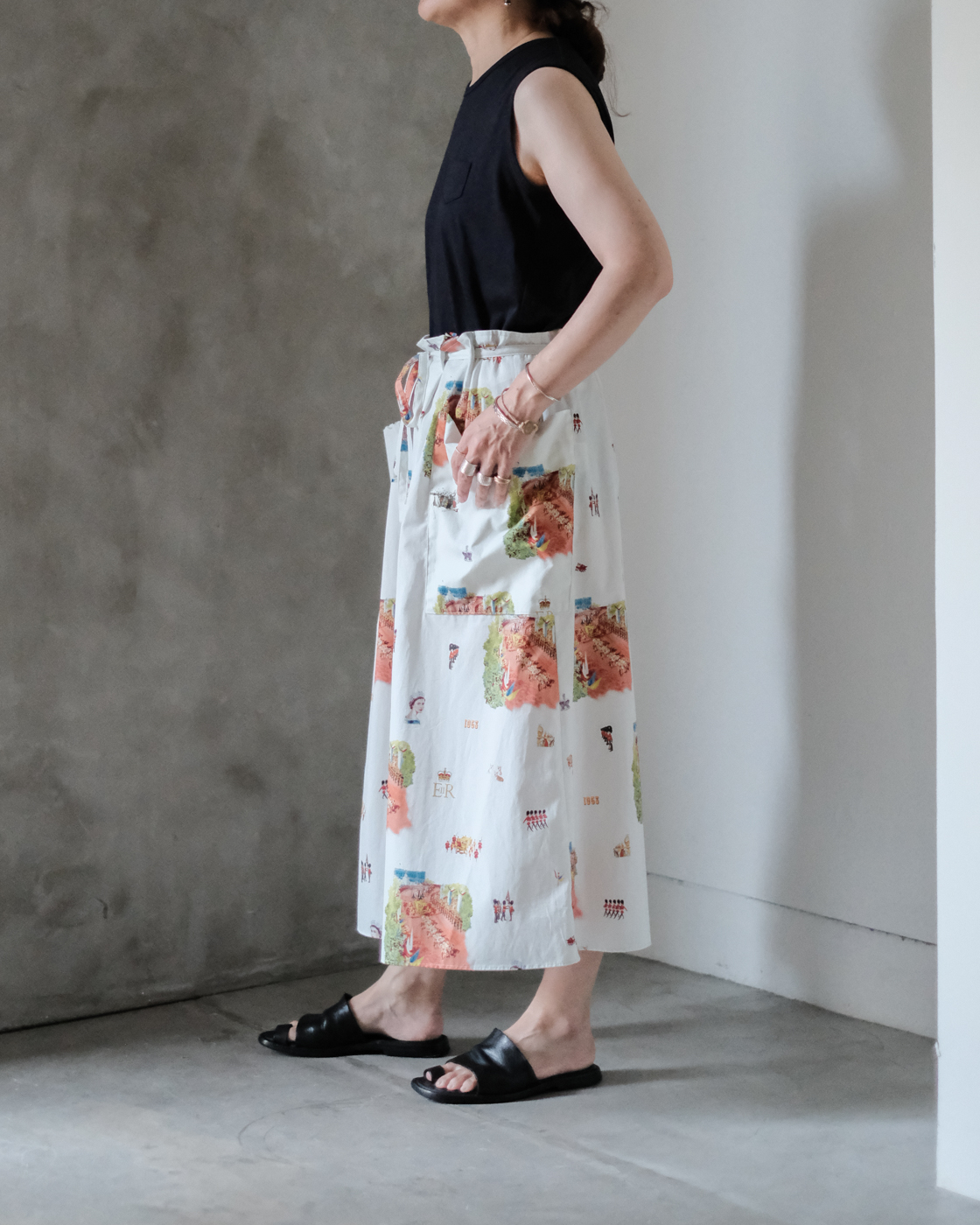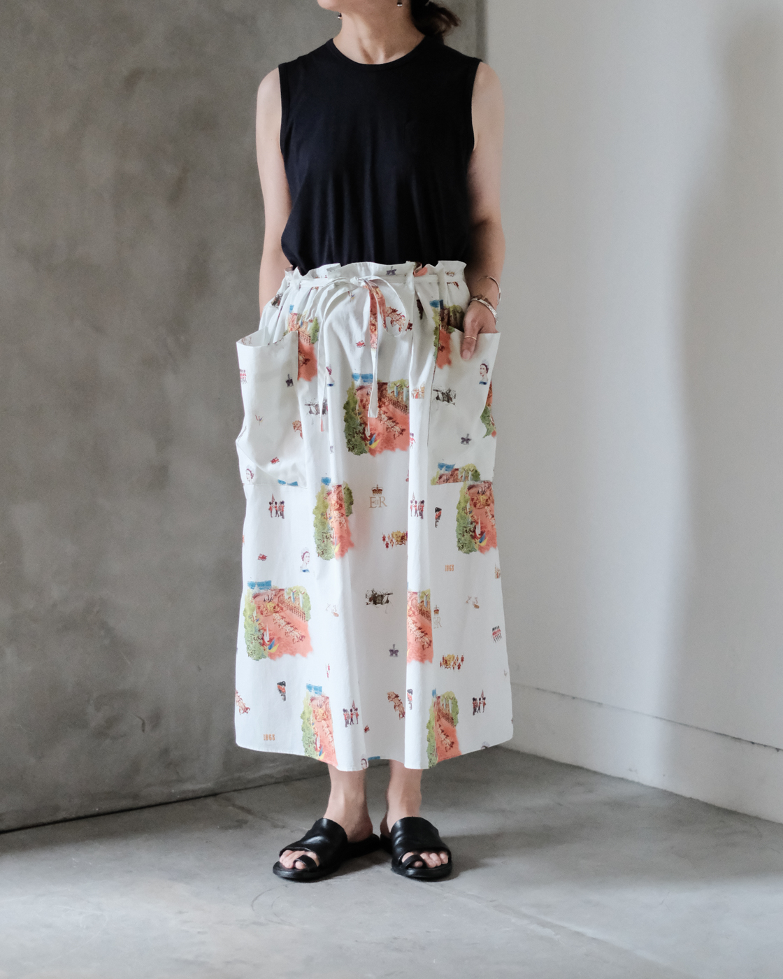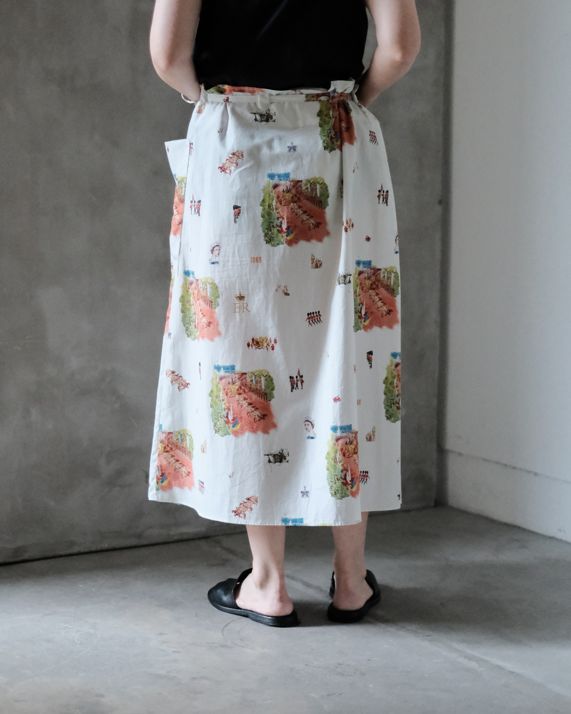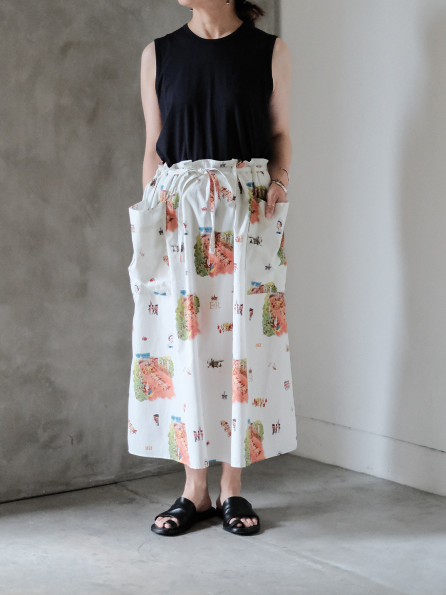 ウエストの紐を絞って、自然な立体感が生まれる[HERITAGE STRING SKIRT]のご紹介です。