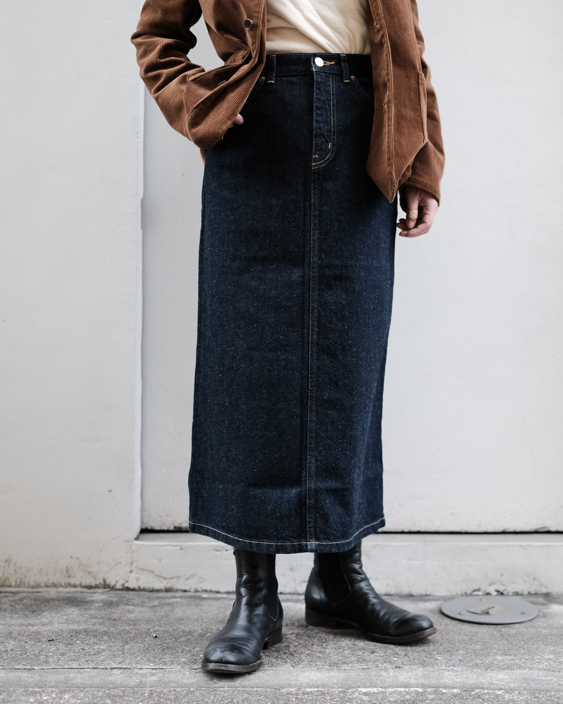 シンプルなトップスを合わせるだけで様になり、存在感あるR&D.M.Co-ならではのスカートです。