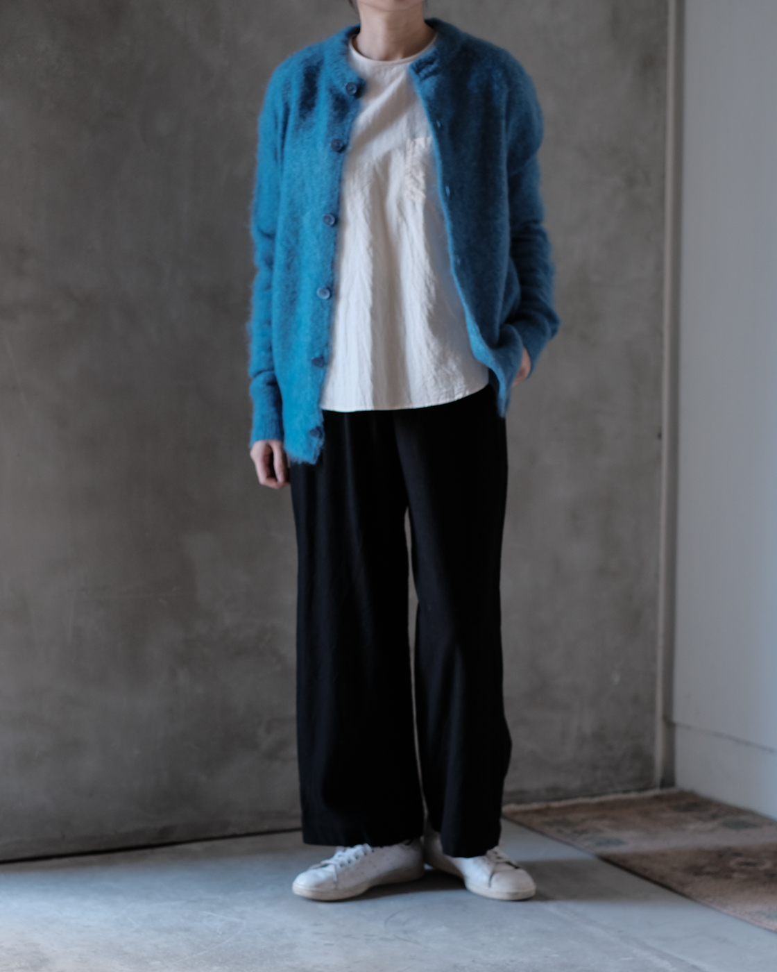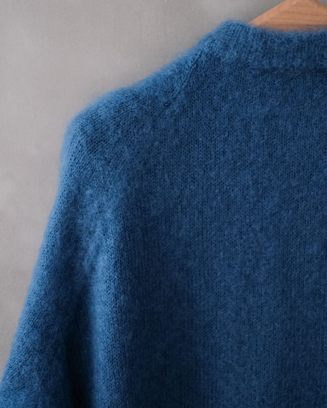 MOHAIR CREW NECK CARDIGAN col.Blue