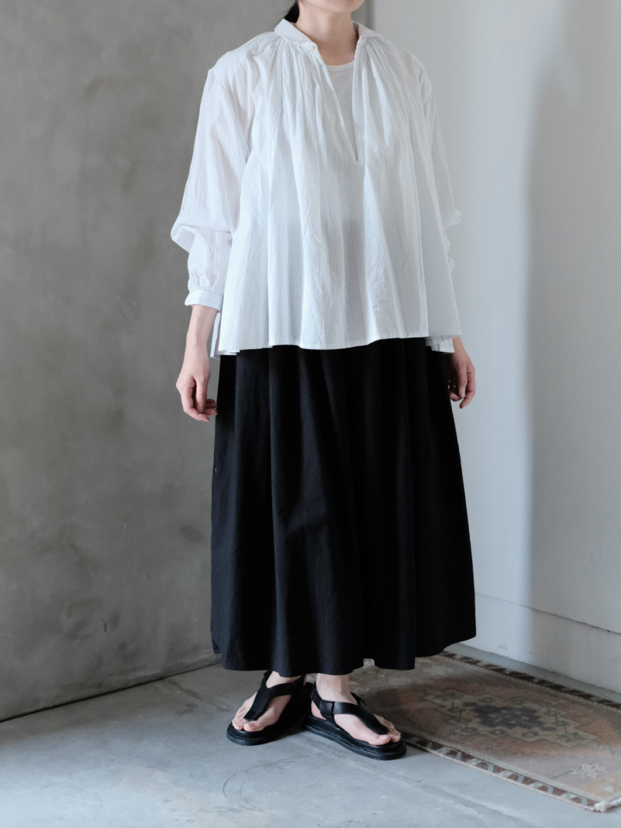 首元に寄せられた繊細なギャザーが洗練された空気を作るYAECAの[ギャザーブラウス ]が届きました。