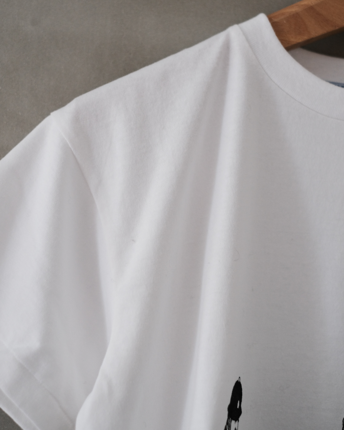 Tシャツの上からシャツやジャケットなどを羽織って、ちらりと覗くプリント部分がアクセントにも。