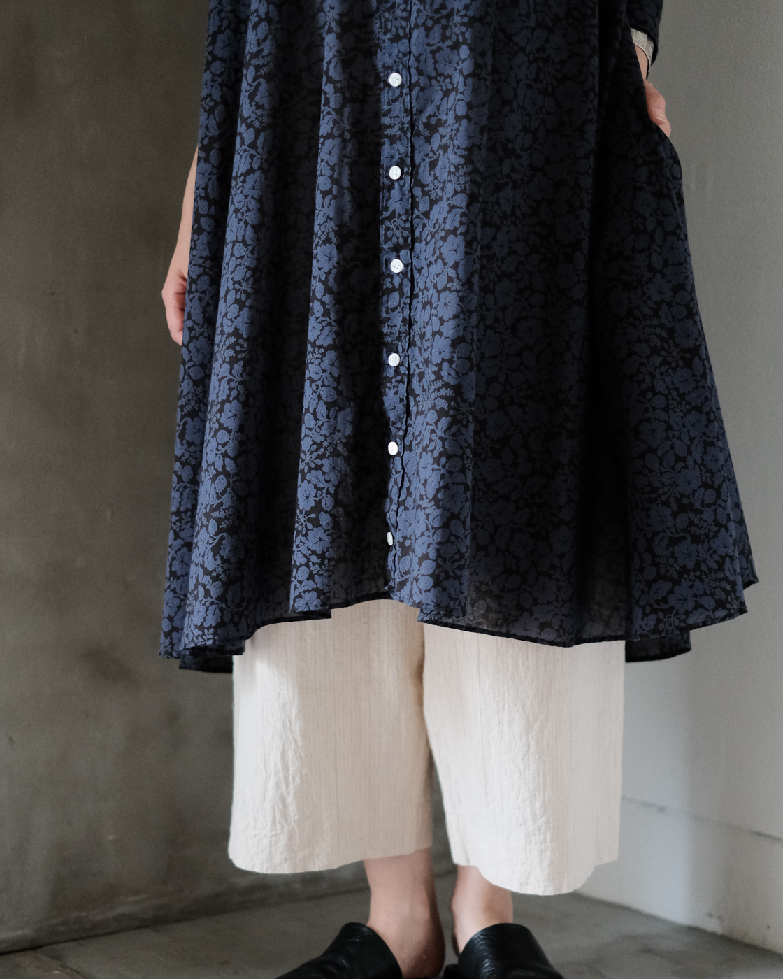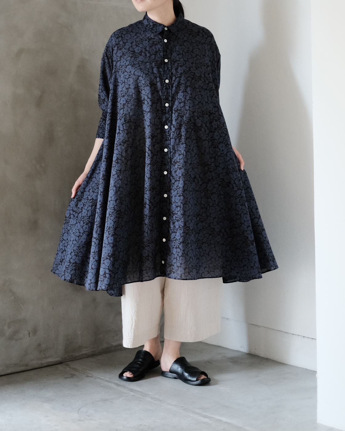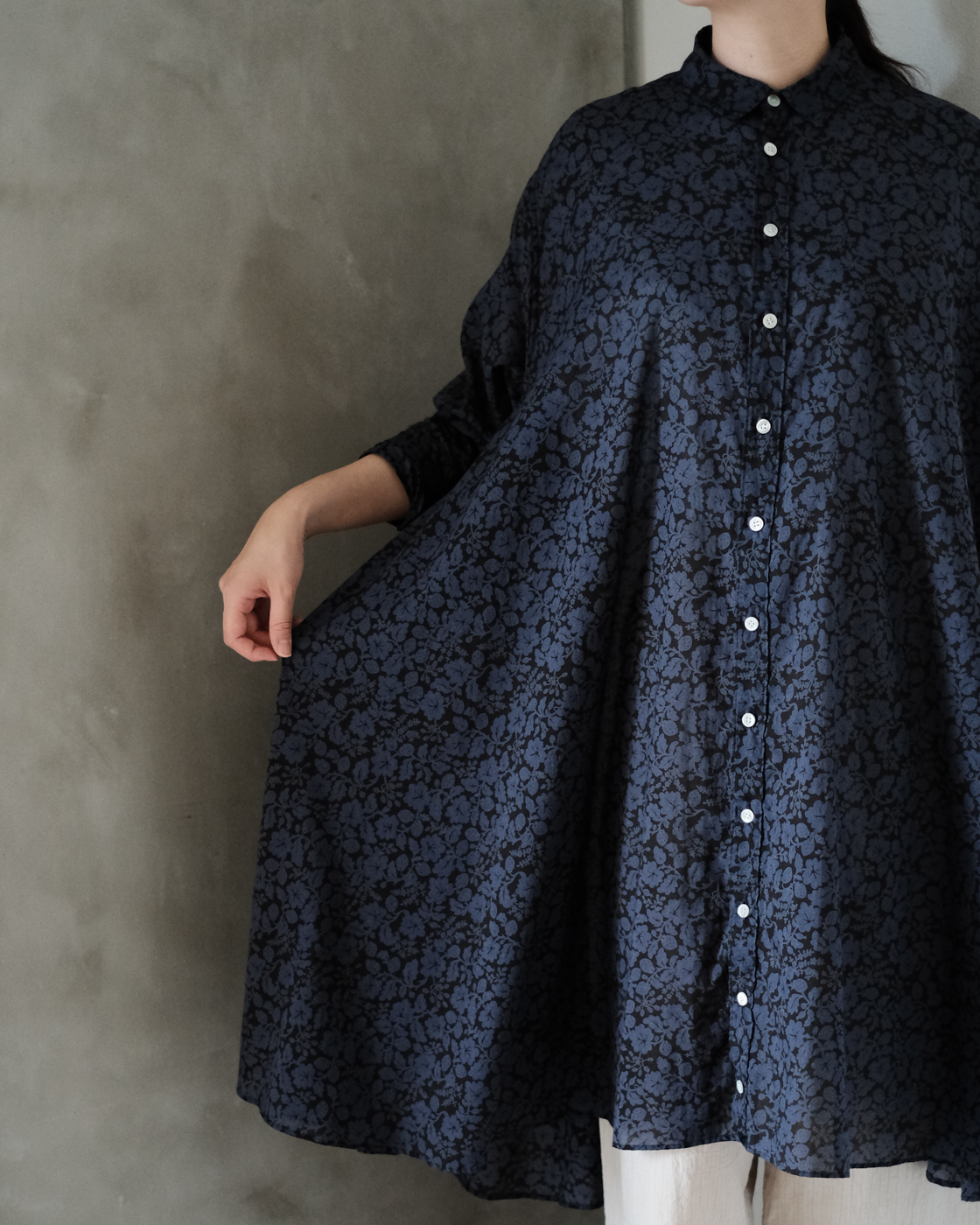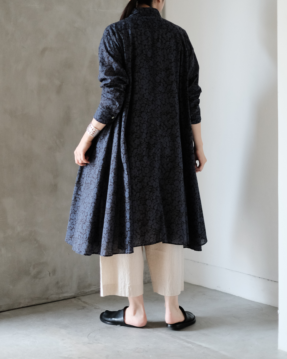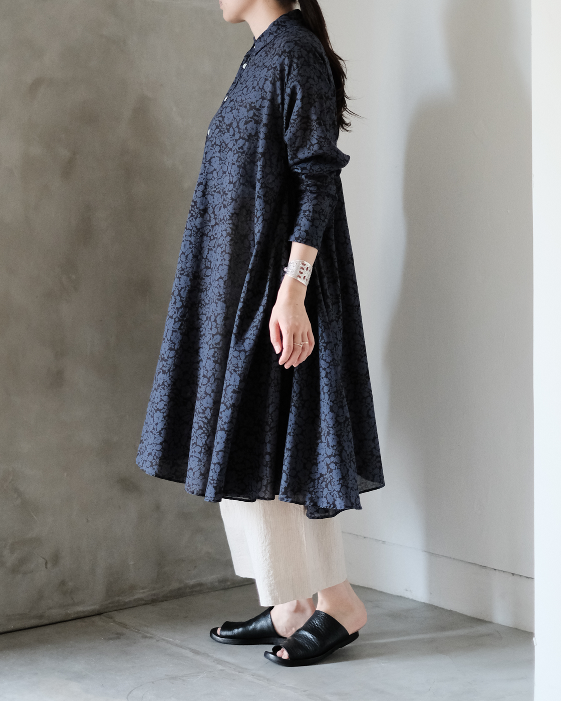 長めに設計された着丈はワンピースとしても、