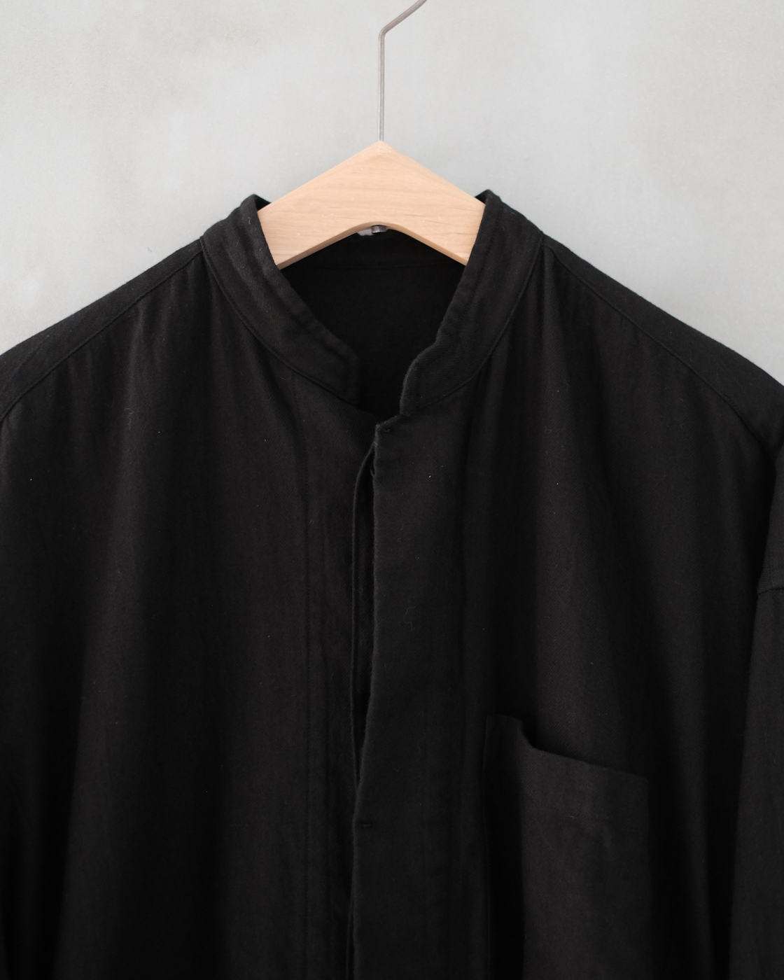 20/1オーガニックツイル スタンドカラーシャツ col.Black