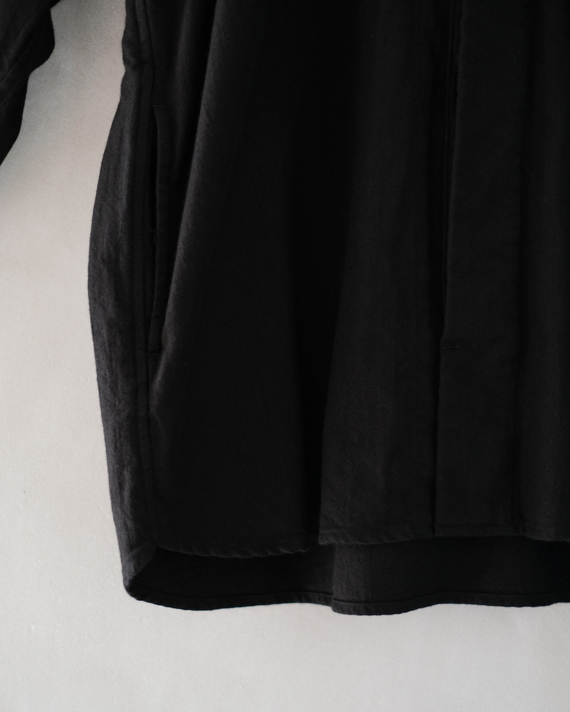 前後で着丈の長さを変えてあり、前から見るとすっきりとした印象でありながら、
