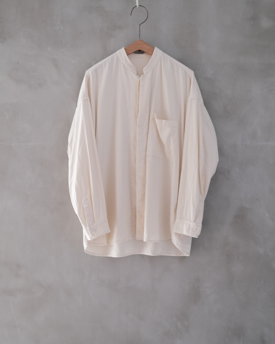 シャツとジャケットが一枚になったような秀逸なデザインの新作のシャツの[20/1オーガニックツイル スタンドカラーシャツ]が届きました。