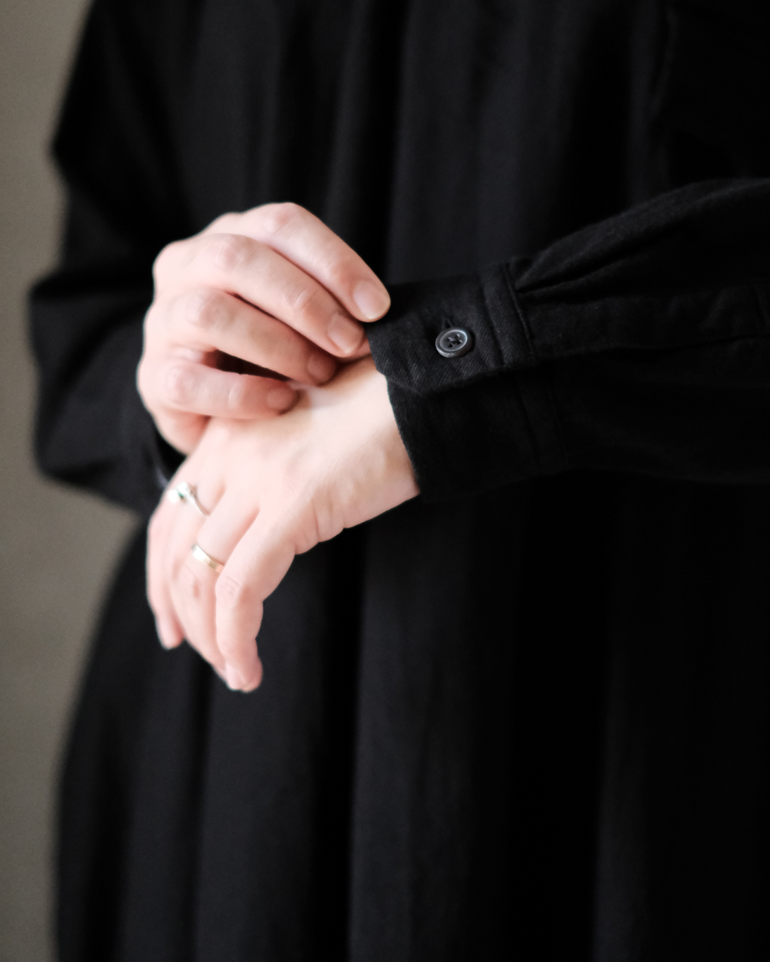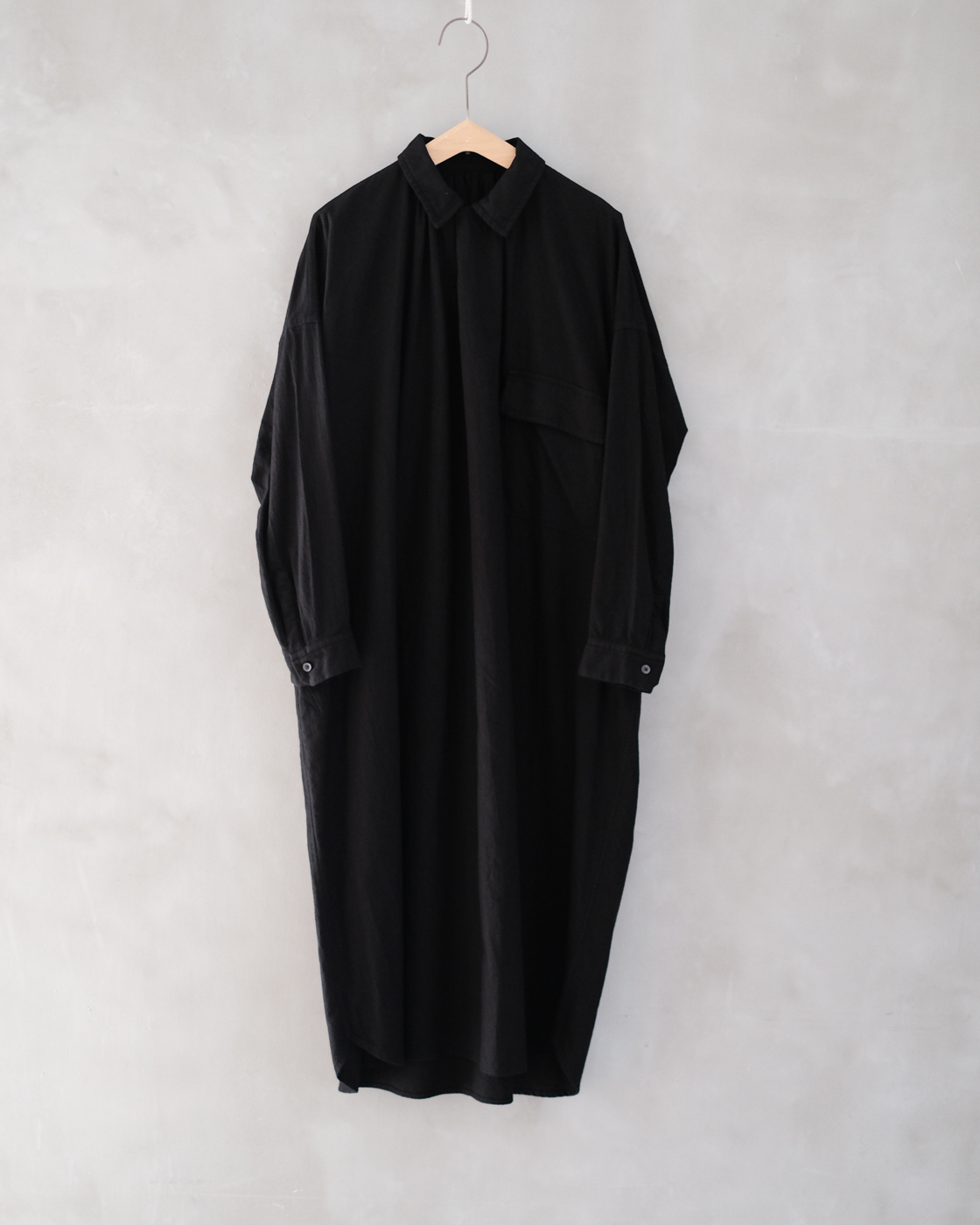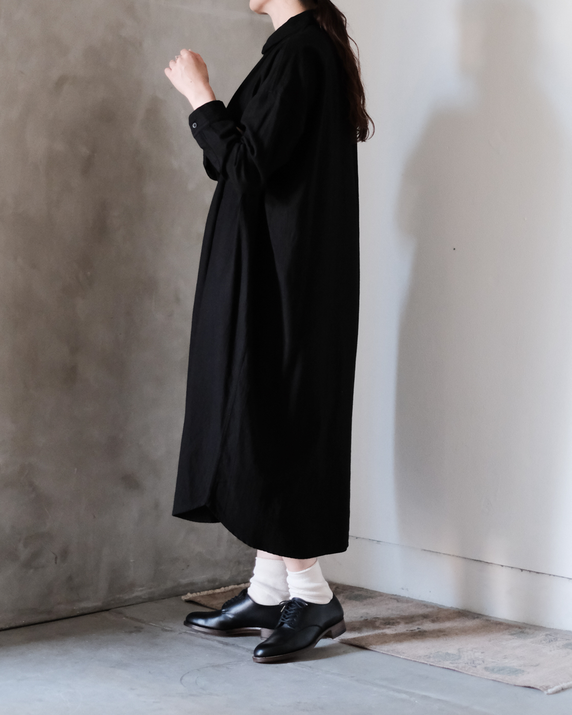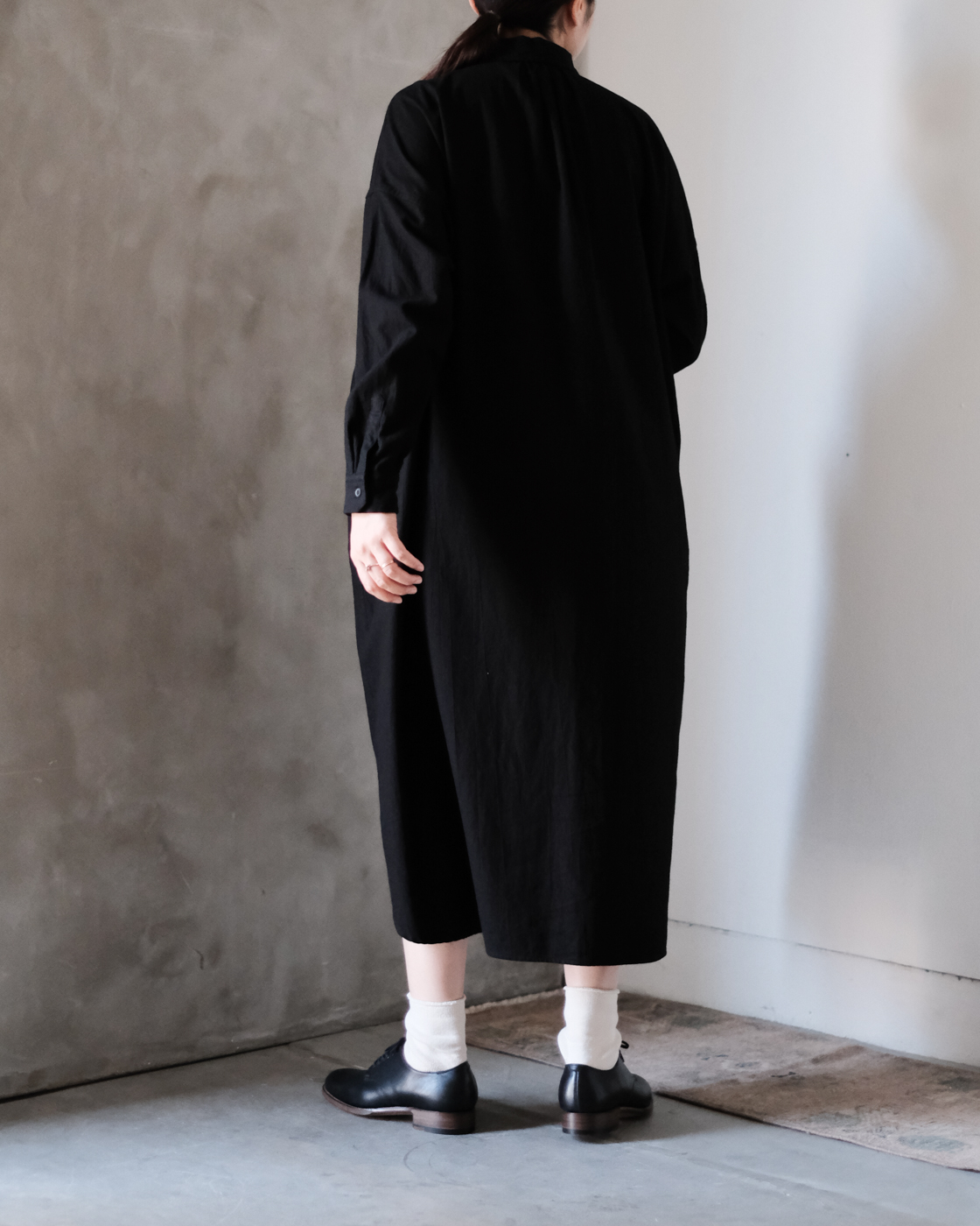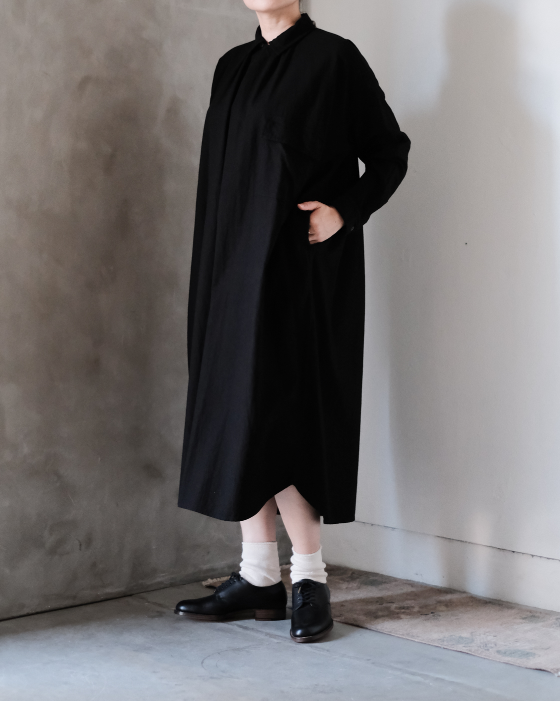 ワークな空気もありつつ女性らしいディテールも感じられる[20/1オーガニックツイル POワンピース]が届きました。