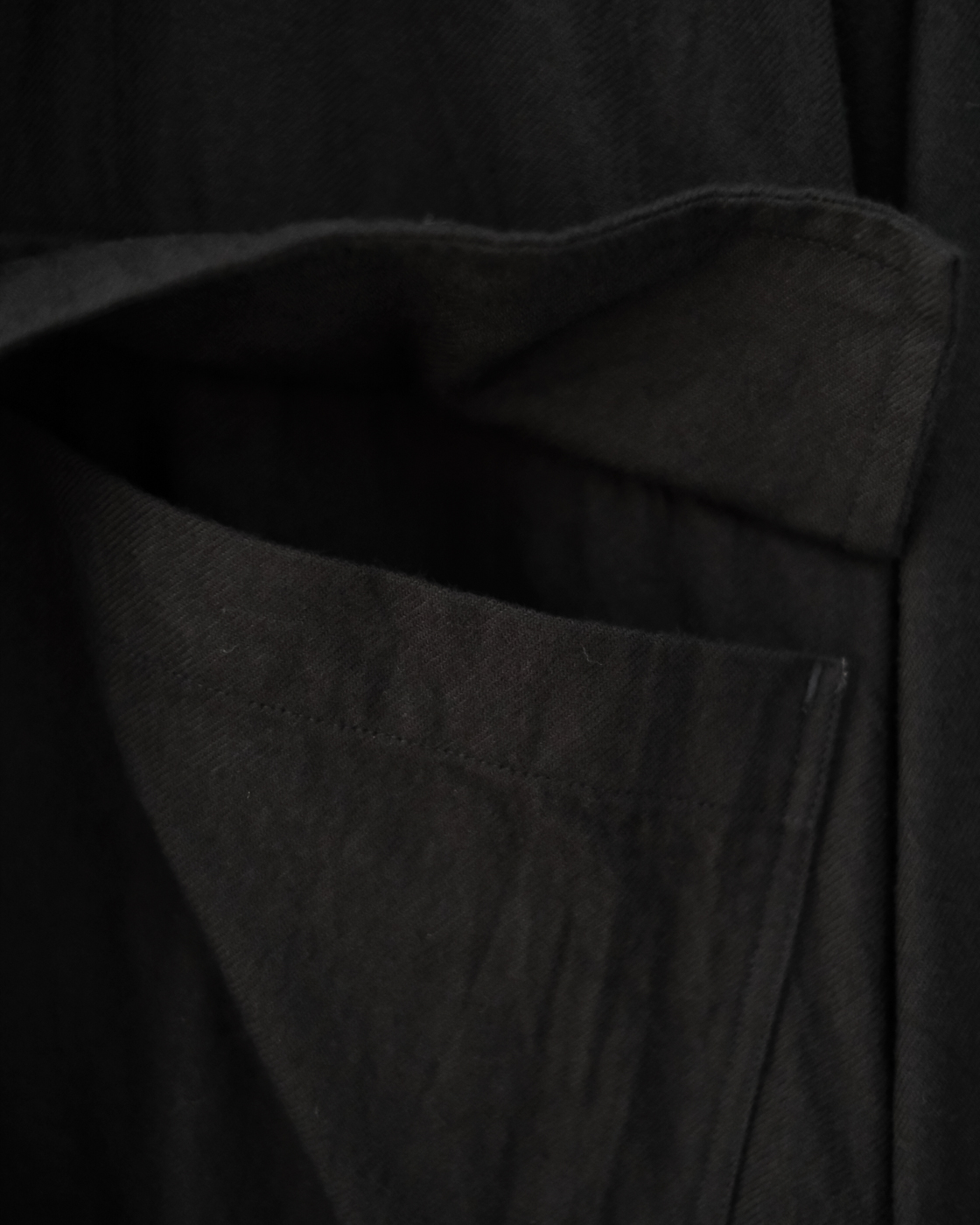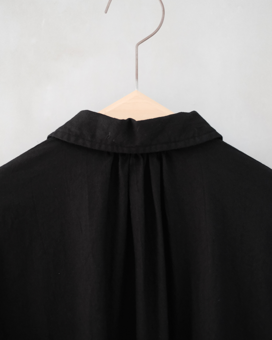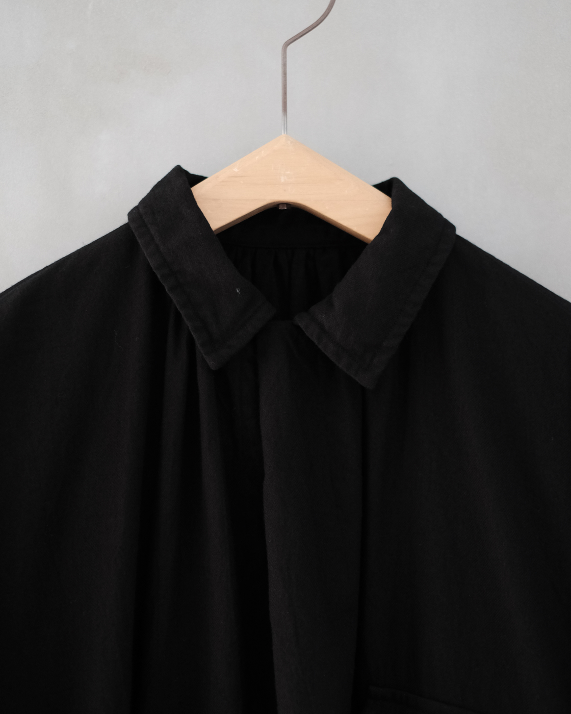 コンパクトな襟にループタイプの一つボタンがヴィンテージのスモッグのような雰囲気を感じさせます。