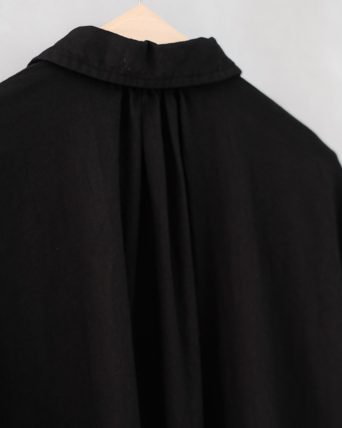 ゆったりとした身幅な上に柔らかい生地の落ち感が綺麗なので、体のラインが出ずにすっきりとした印象でご着用いただけます。