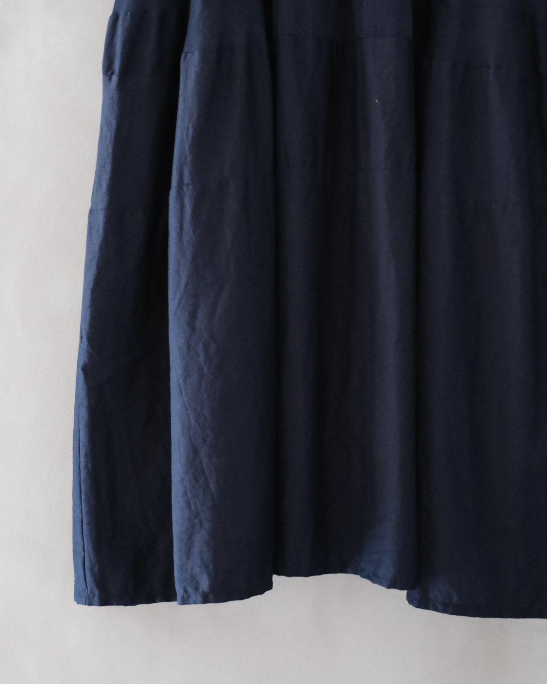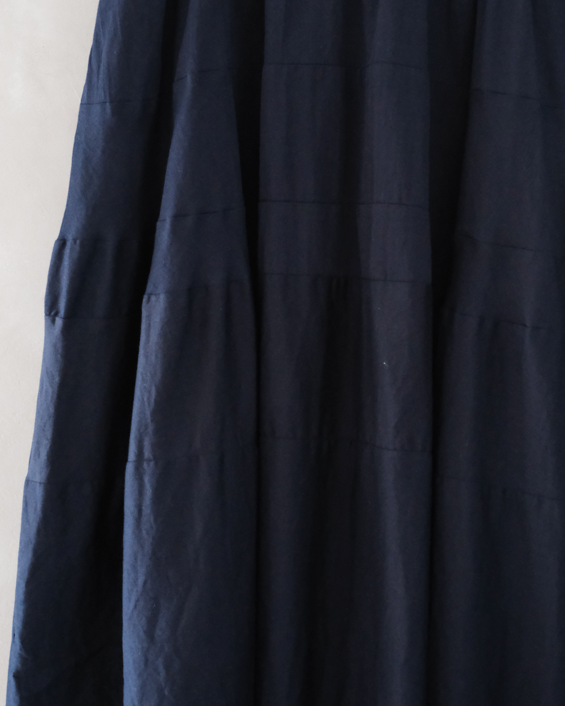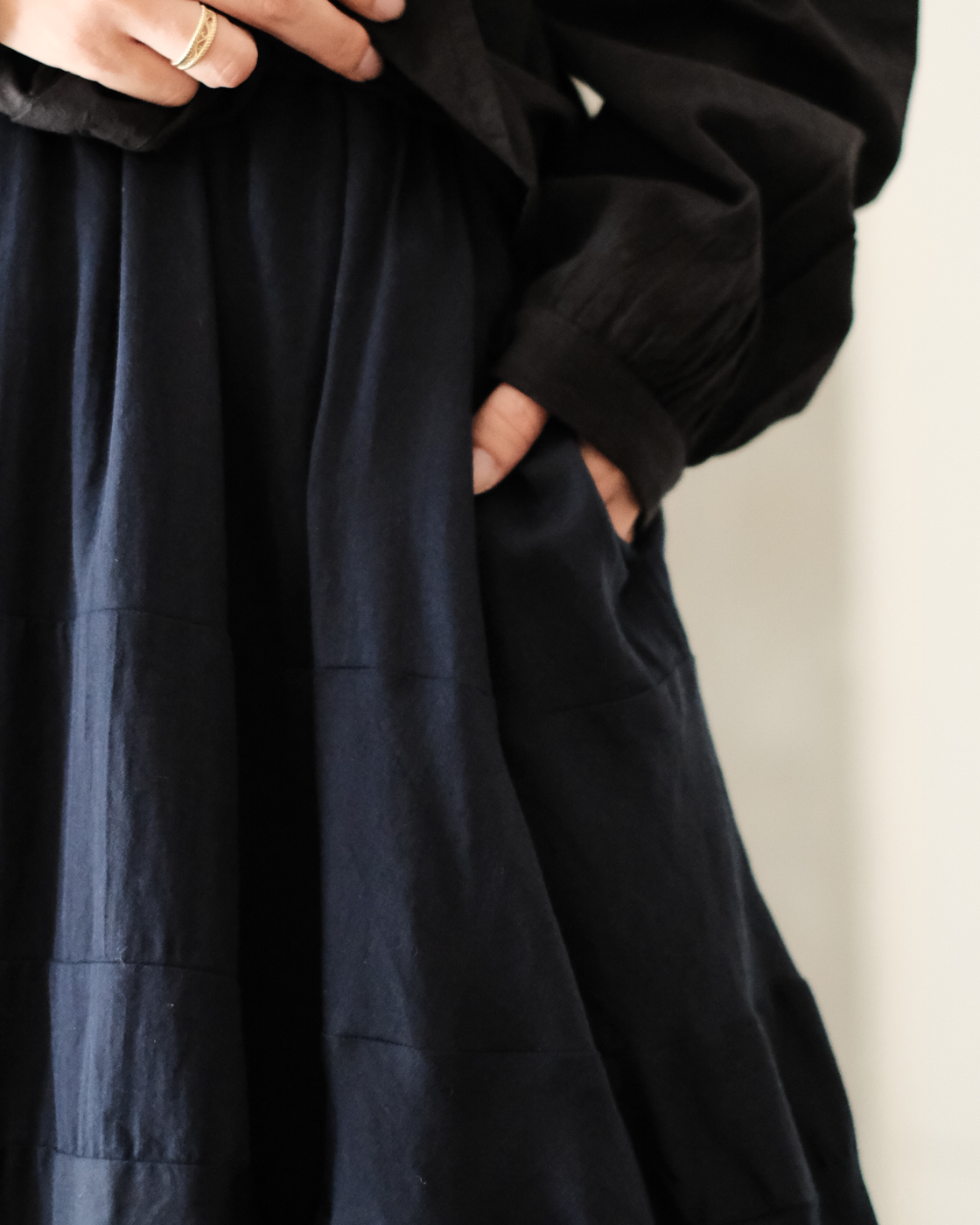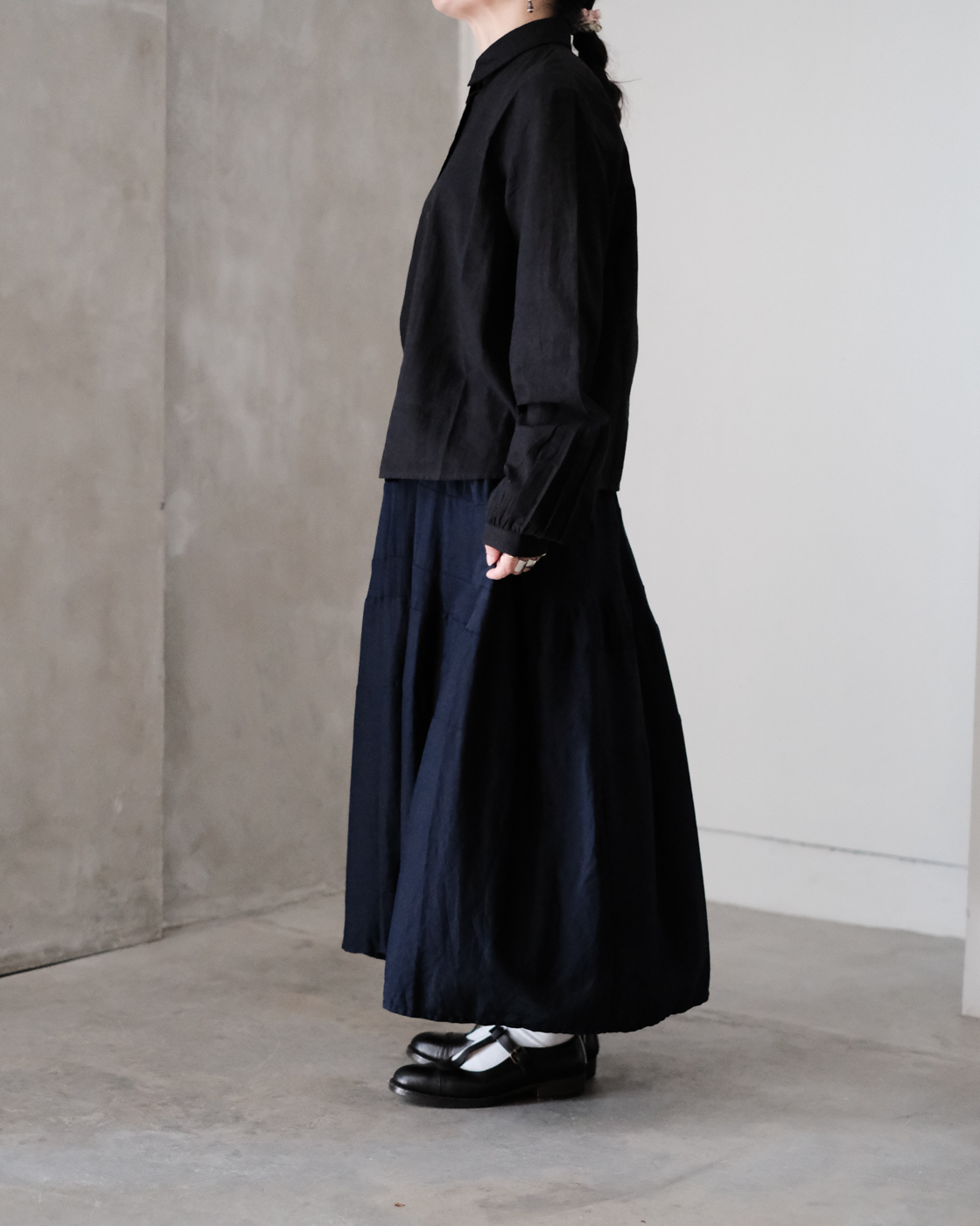 何枚をハギを合わせる事で裾にかけて美しいドレープが表れるのが魅力のスカートです。