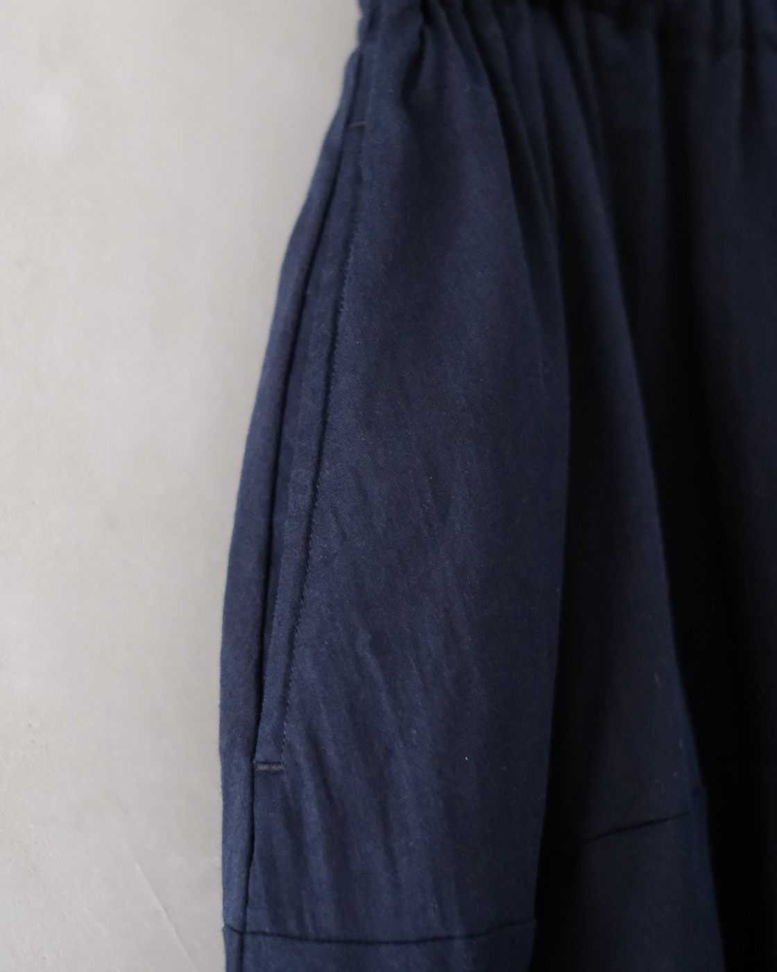 ウエストはゴム、紐で調節出来る仕様となっており、お好みの位置に合わせてご着用いただけます。