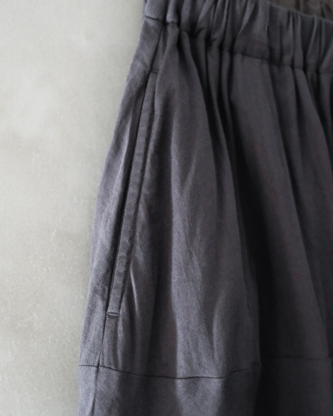 ウエストはゴム、紐で調節出来る仕様となっており、お好みの位置に合わせてご着用いただけます。