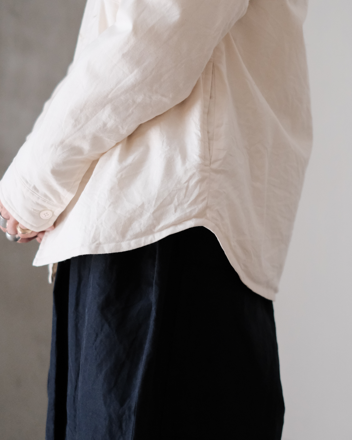 袖にはカフスも付いていて、名前の通り本当にシャツのような感覚でご着用いただけます。