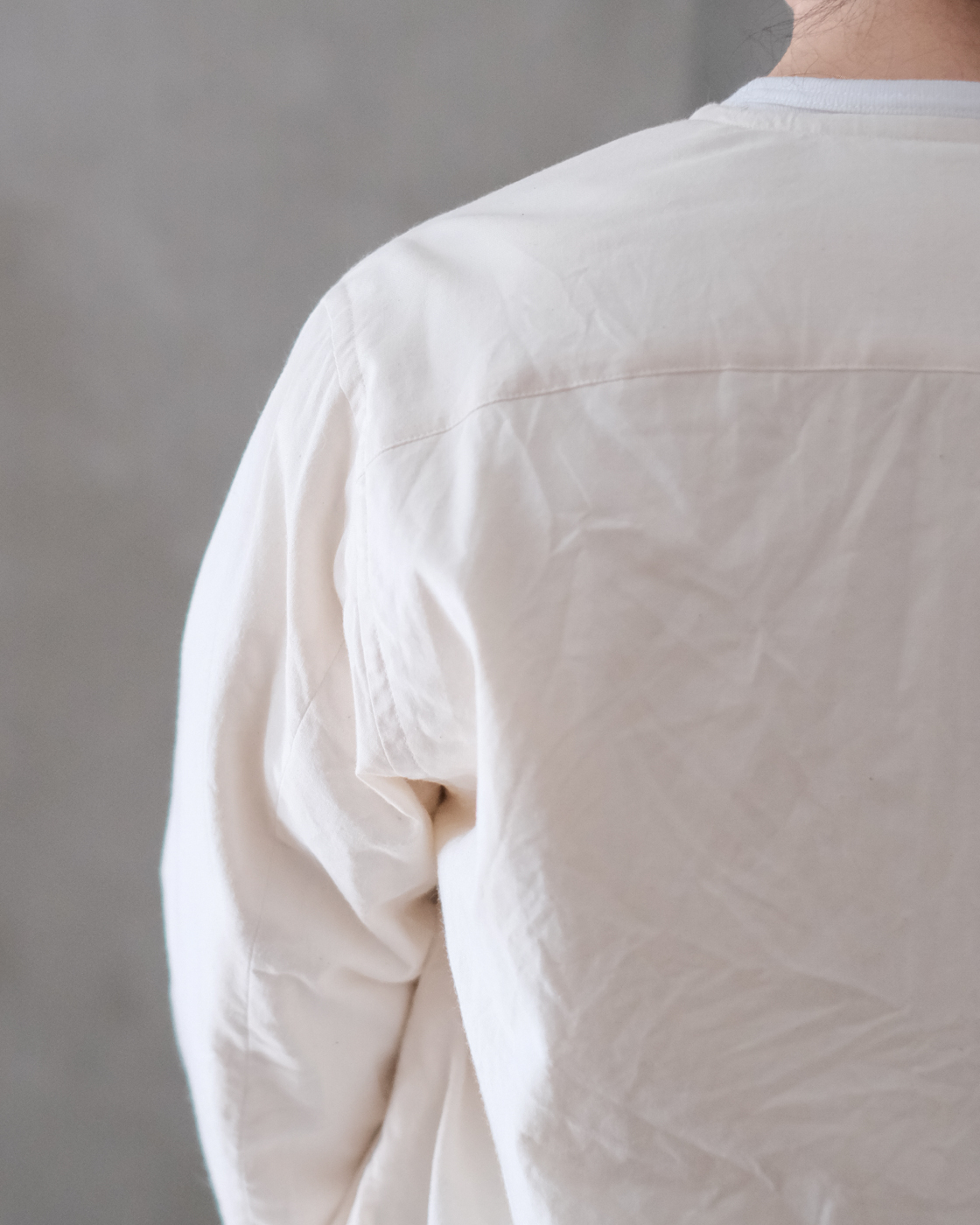 コンパクトに見えますが、肩周りも身幅も窮屈さが無く、スームジに可動するように着る人の動きを考えて作られております。