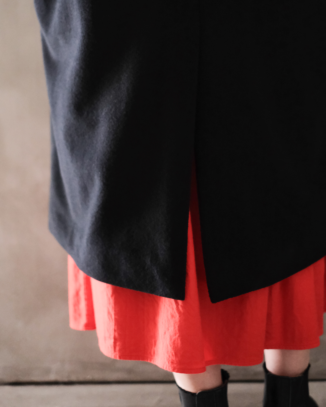 前と後で使用する生地の分量が異なり、一体感を出しながら立体的な美しいシルエットを表現した作りとなっております。