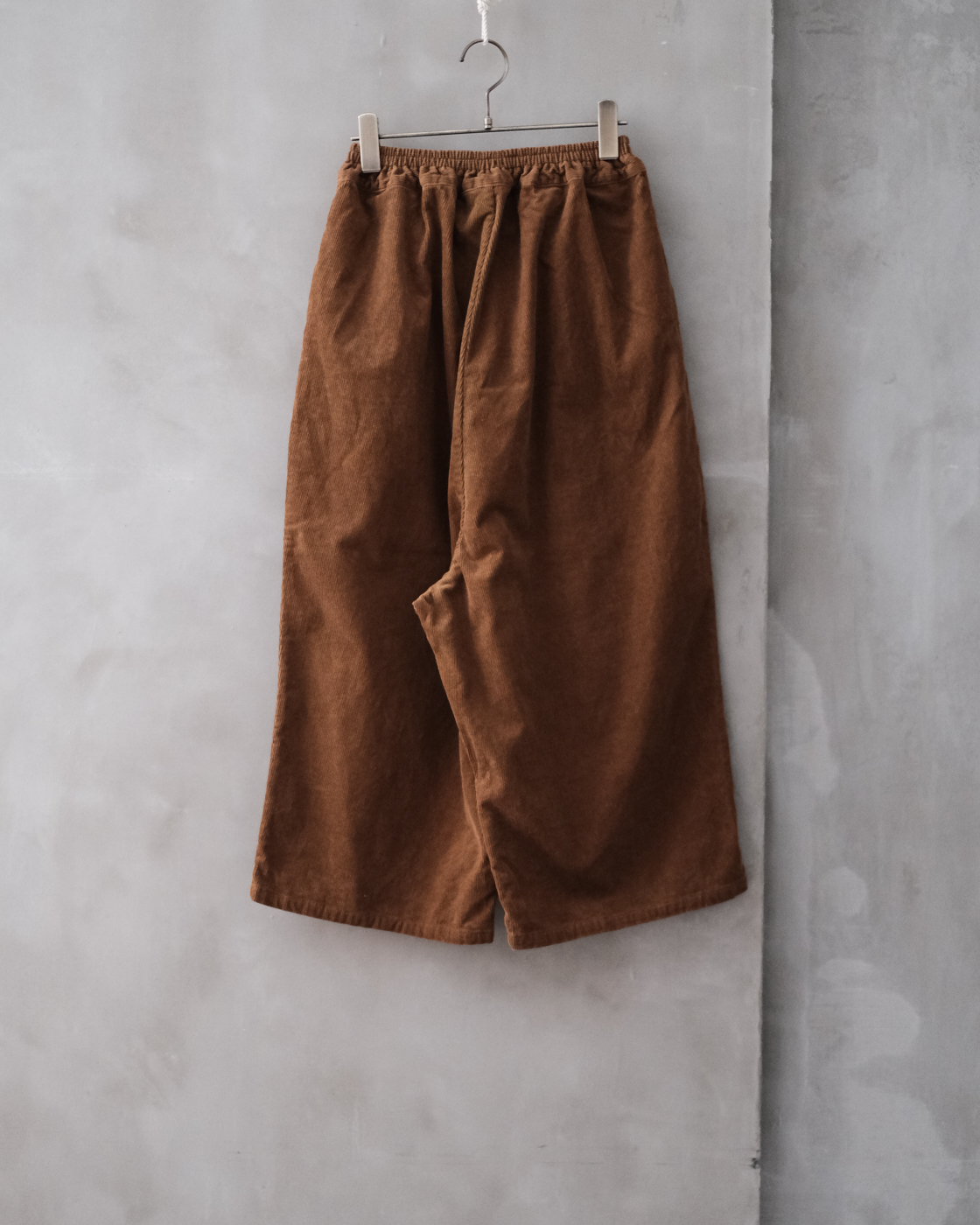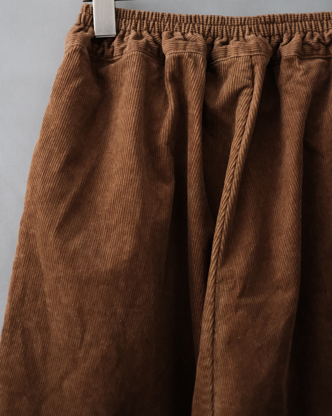 ウエストがゴム仕様のワイドシルエットが特徴的で、ゆったりとしたフォルムに印象に残る立体感。