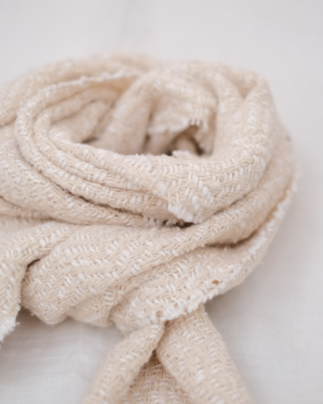 オーガニックコットンを原料に、通常の紡績の際に糸になりきれなかった繊維を使用し、ゆっくりと空気を含みながら織り上げられています。