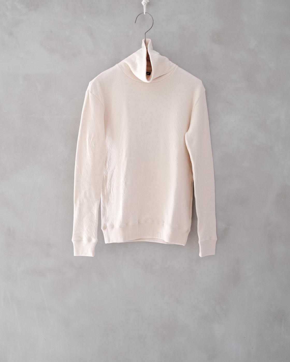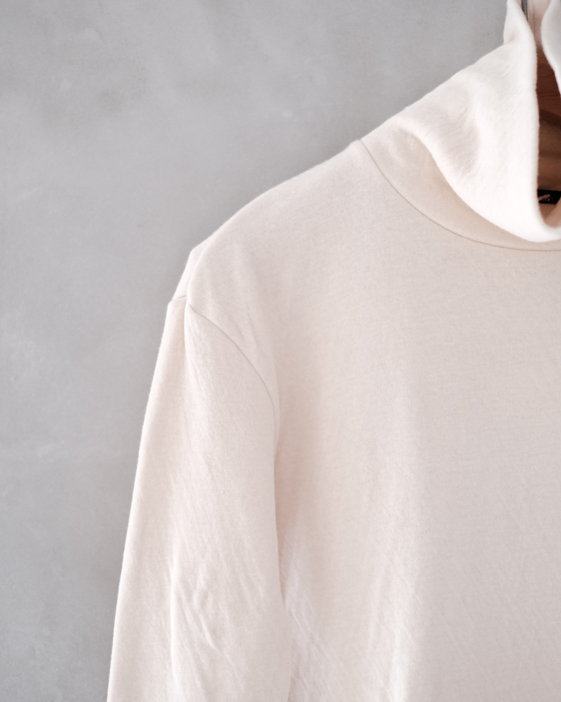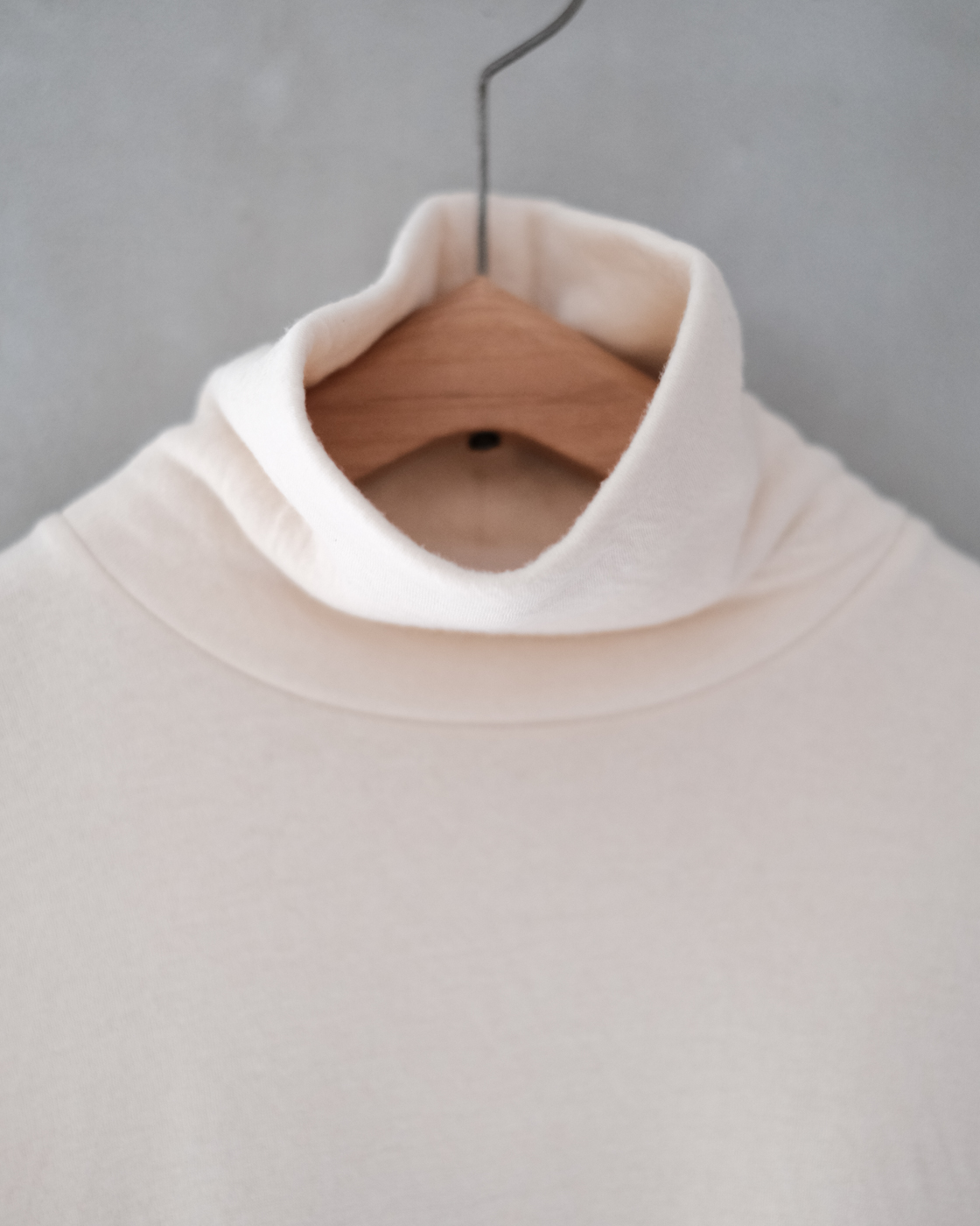 上質な糸を使用した4重ガーゼのハイネックシャツ。
