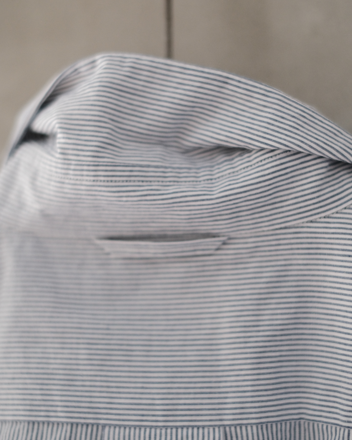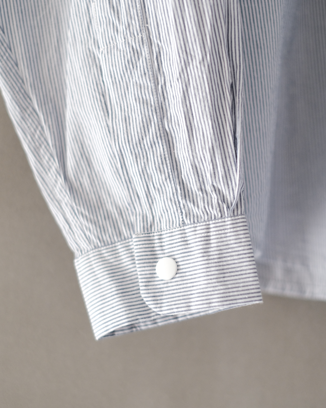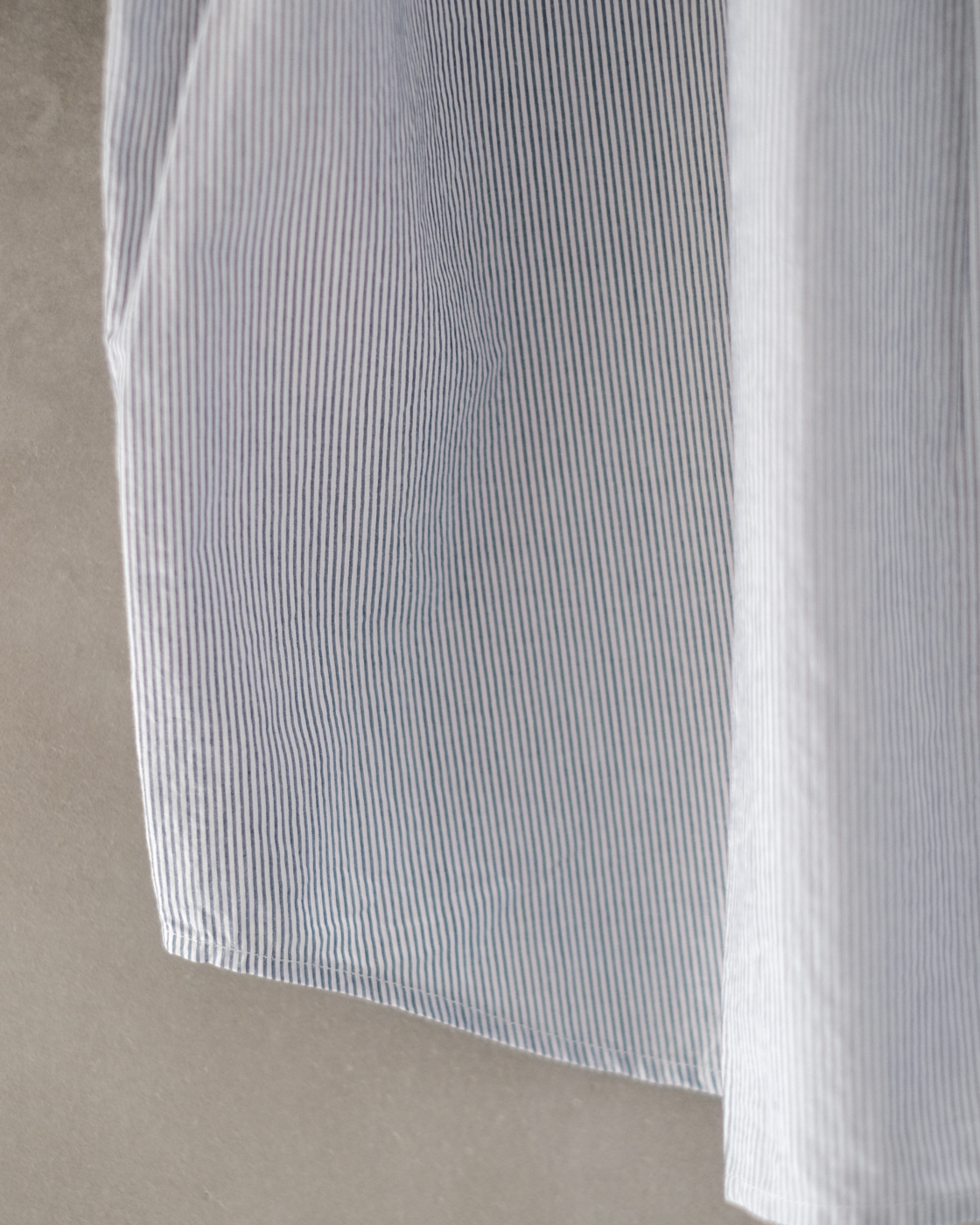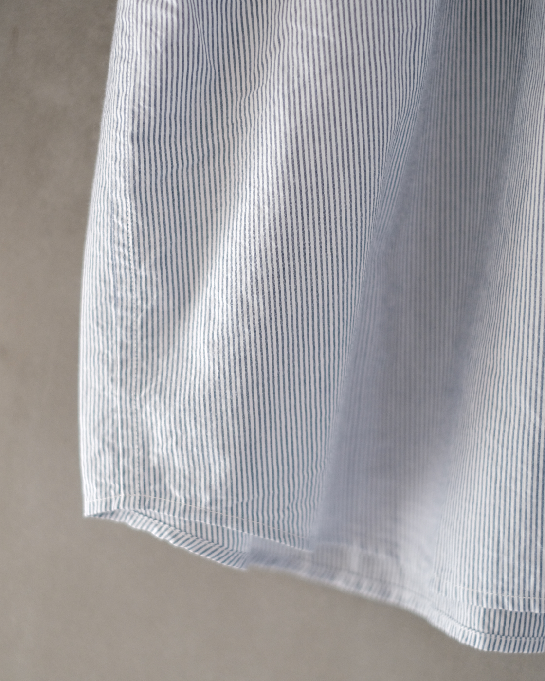 細いブルーのストライプ柄は、日常に馴染みやすくも、新鮮さも与えてくれます。
