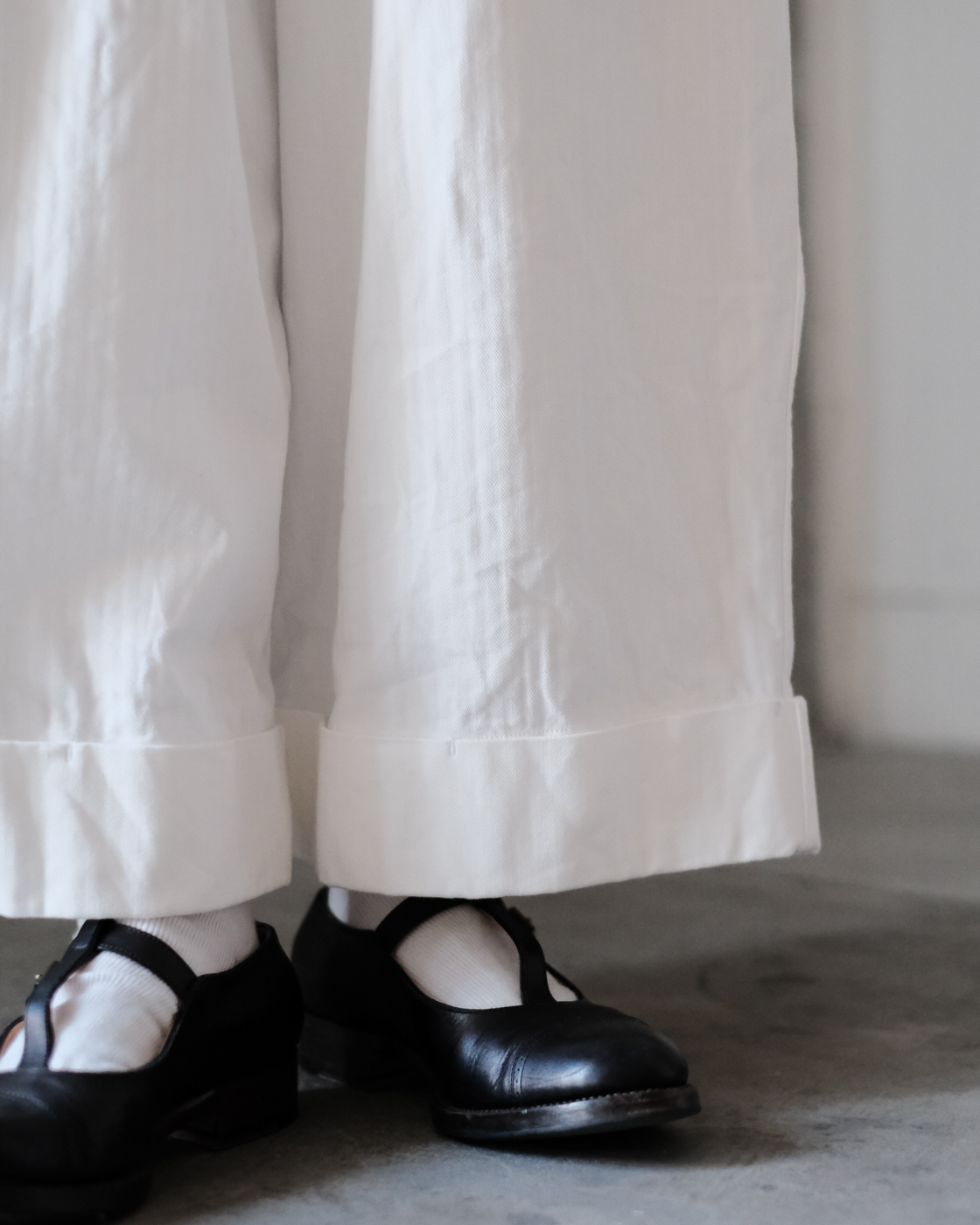 ゴーシュが新たに定番のパンツとして提案する[スレンヘリンボン ワイドパンツ] のご紹介です。