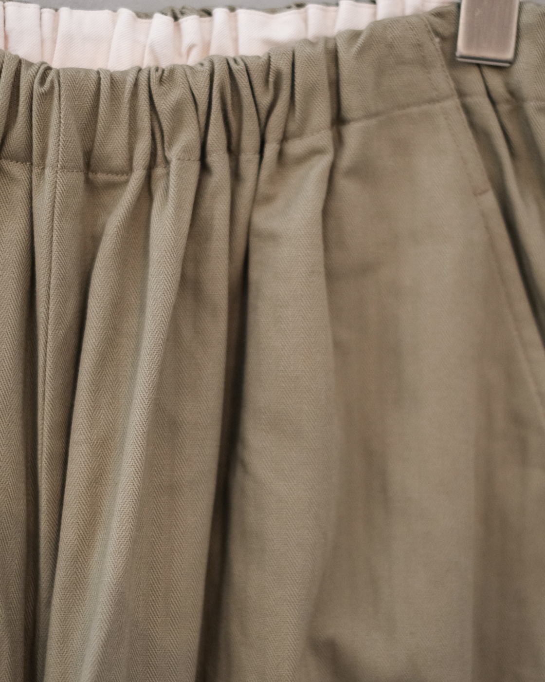 裾がダブルになっている為、シルエットにより立体感が強調され印象的なパンツに。