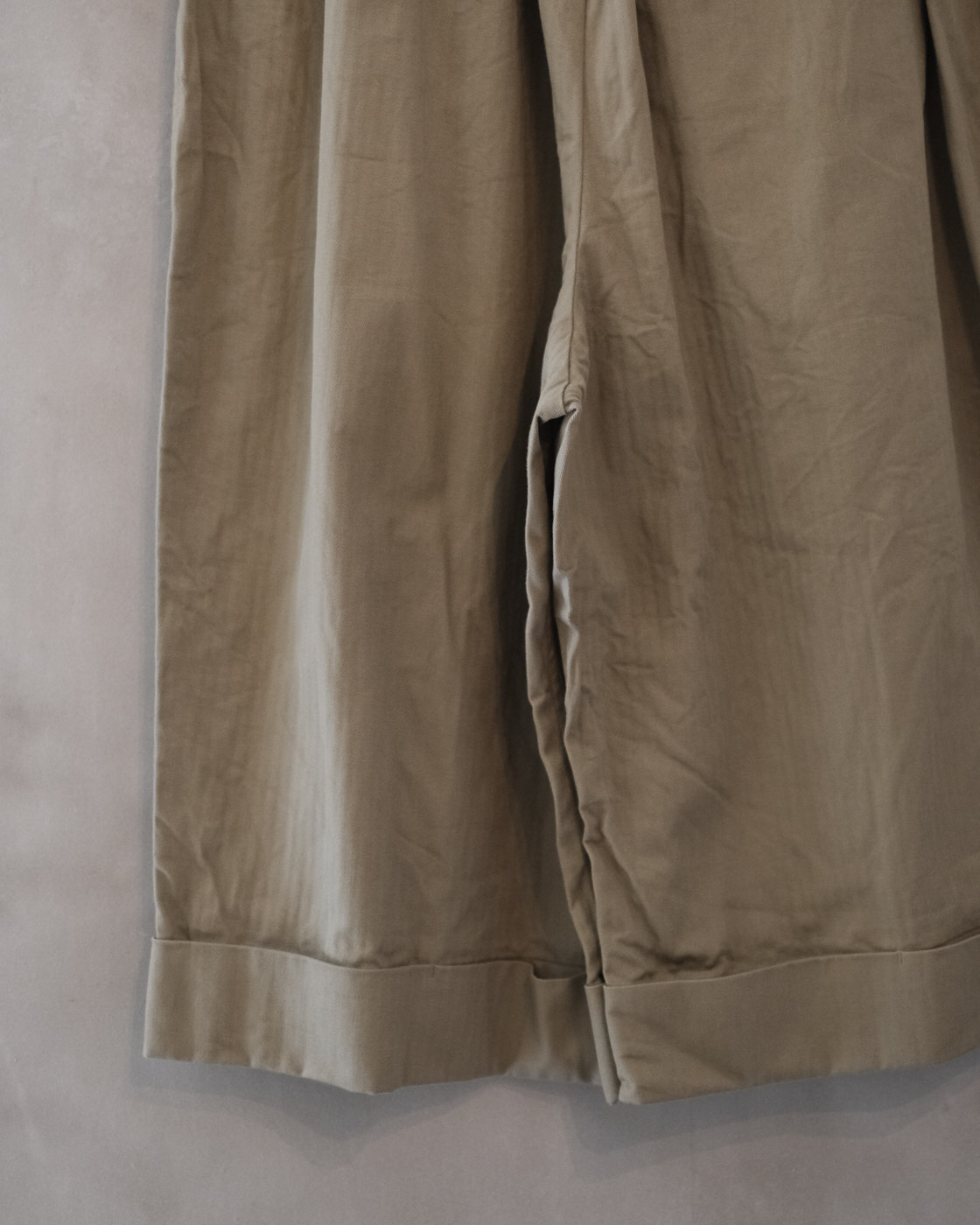 ゴーシュが新たに定番のパンツとして提案する[スレンヘリンボン ワイドパンツ] のご紹介です。