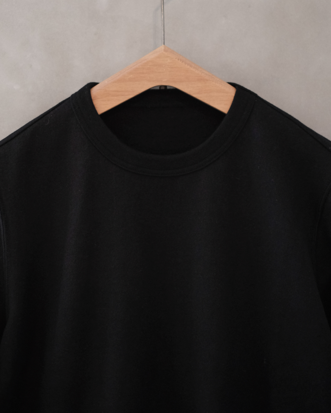 裏毛ほど厚みはなく、天竺よりもしっかりした素材感となっており、