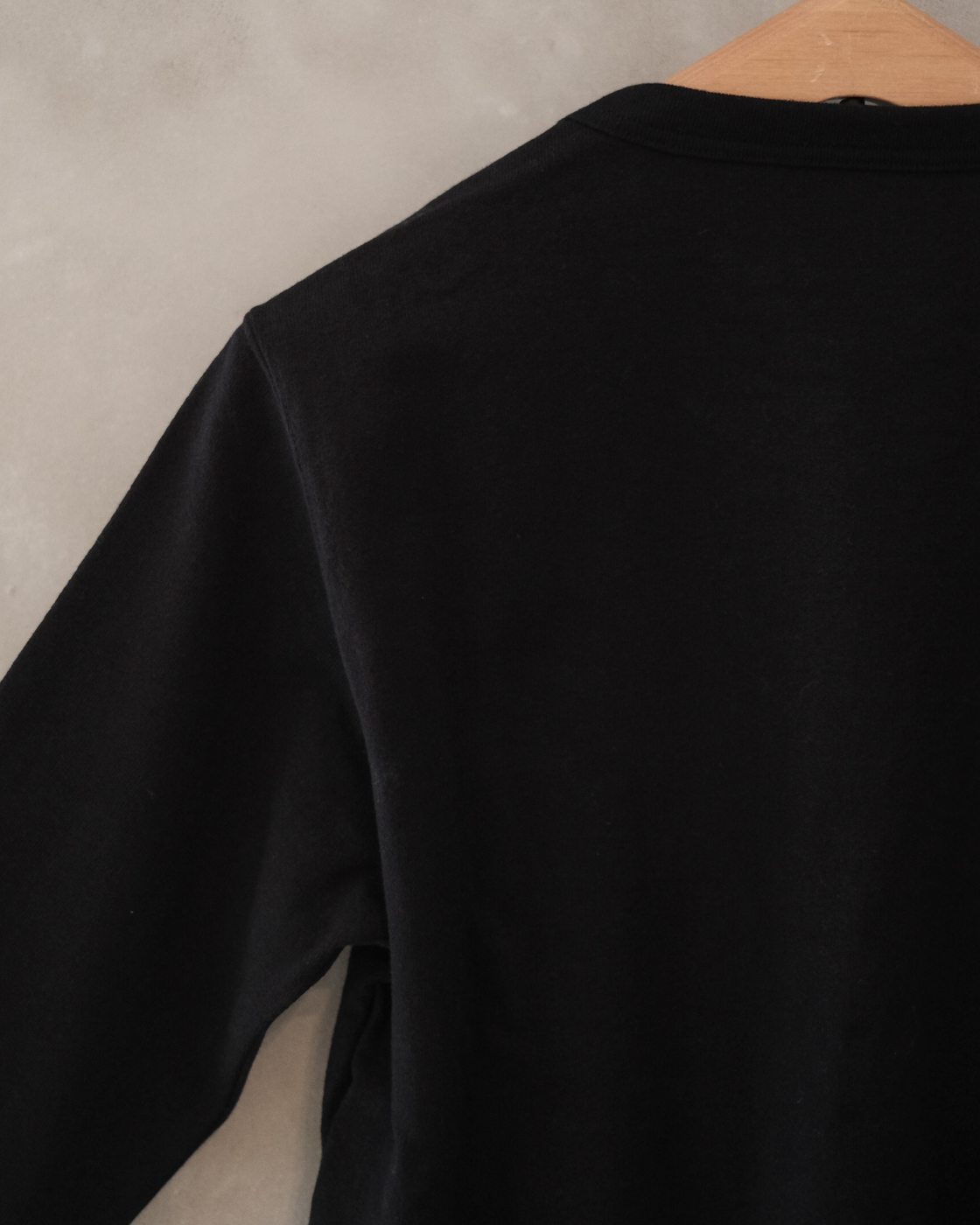 首元は細めのリブのクルーネックで、首が綺麗に見えるように形取られており、