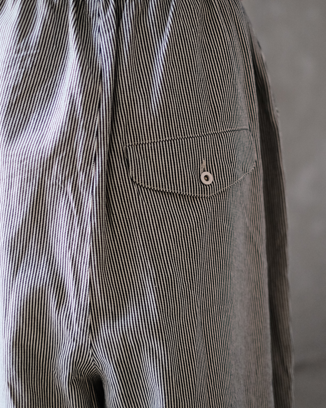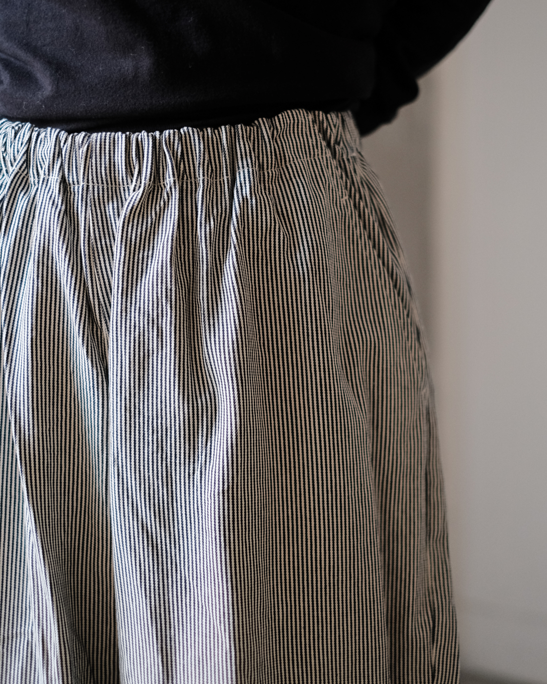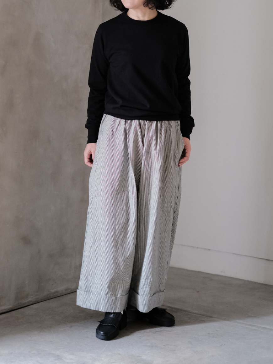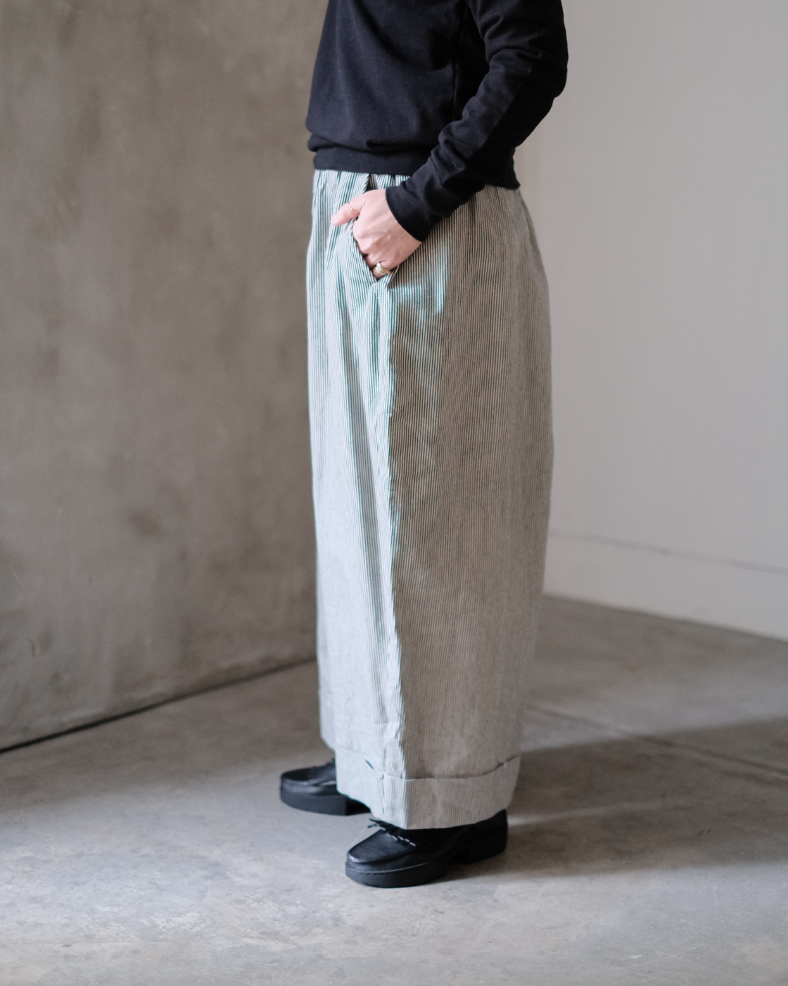 ワークな空気を洗練させて日常に寄り添ってくれる[コットンヒッコリー ワイドパンツ]がゴーシュより届きました。
