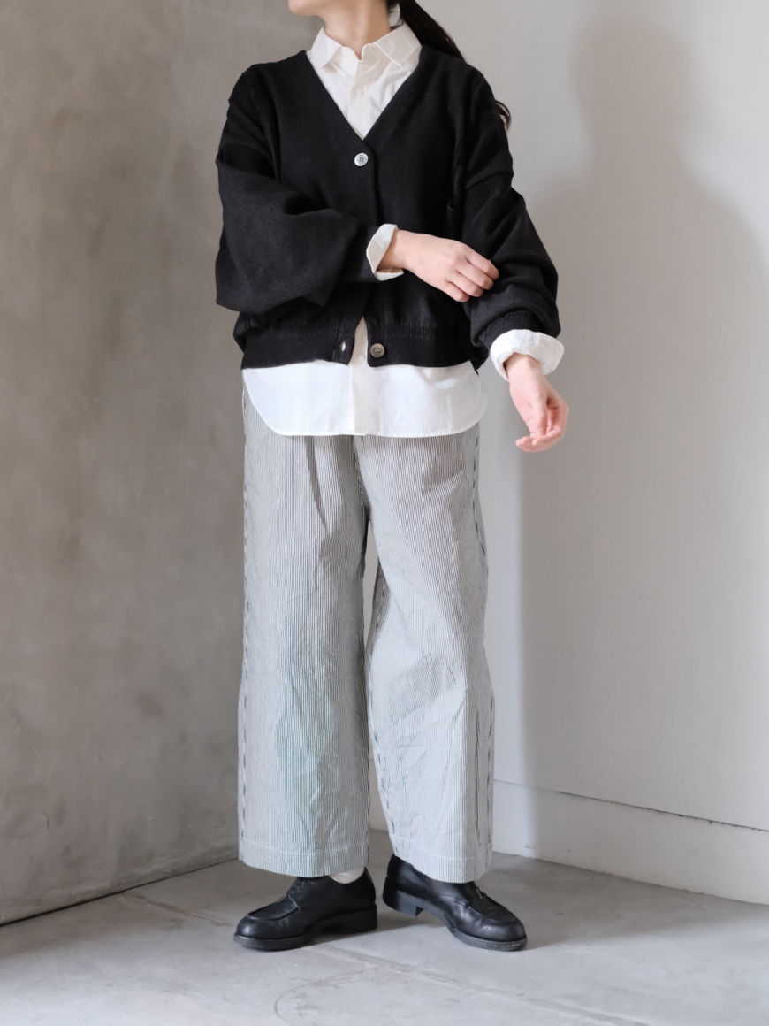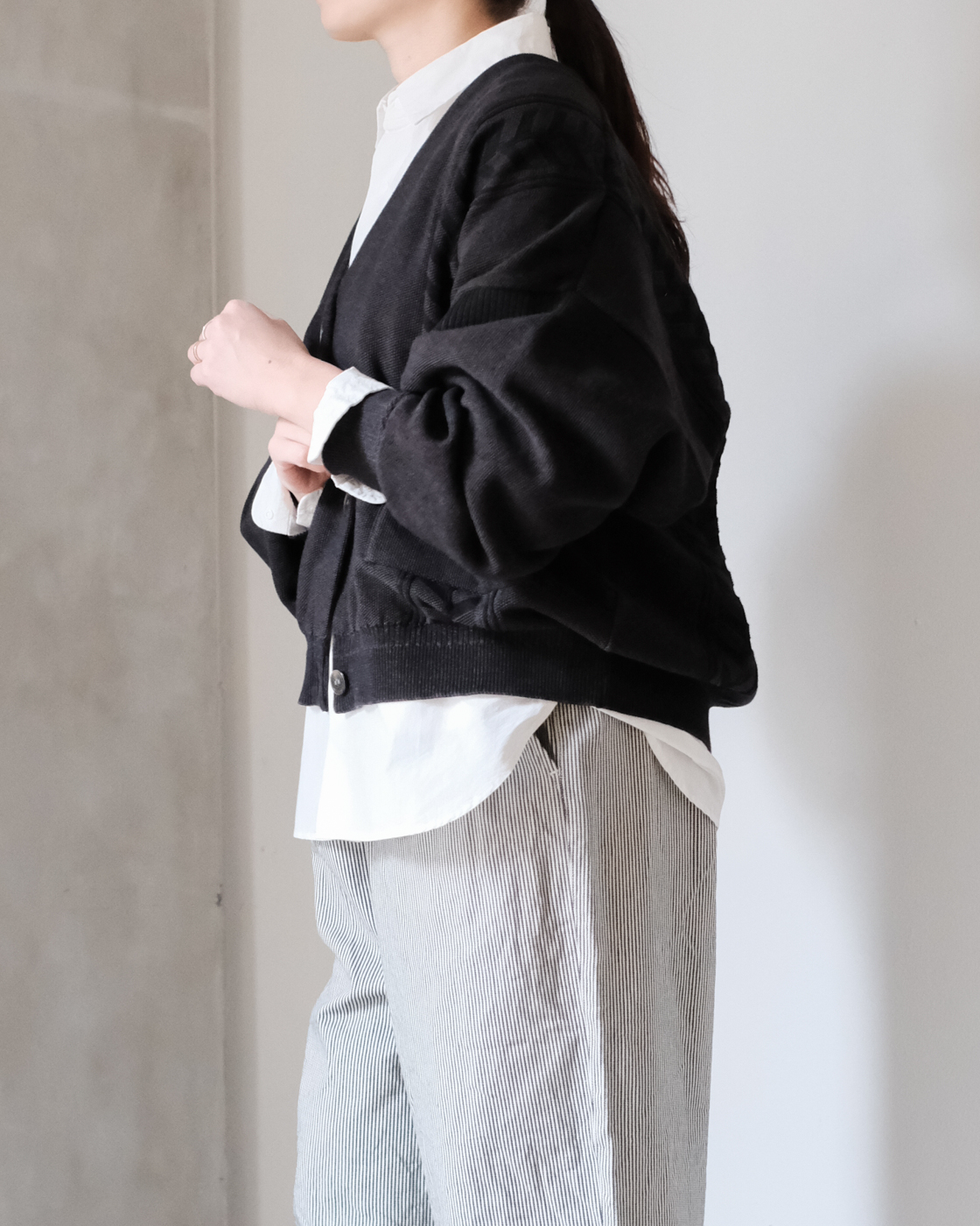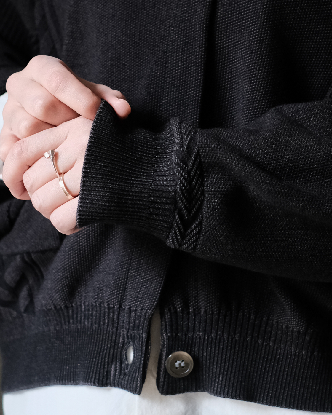 交互に向かい合う編み柄の存在感が余韻を残すYASHIKIの[Wadachi Cardigan]が届きました。
