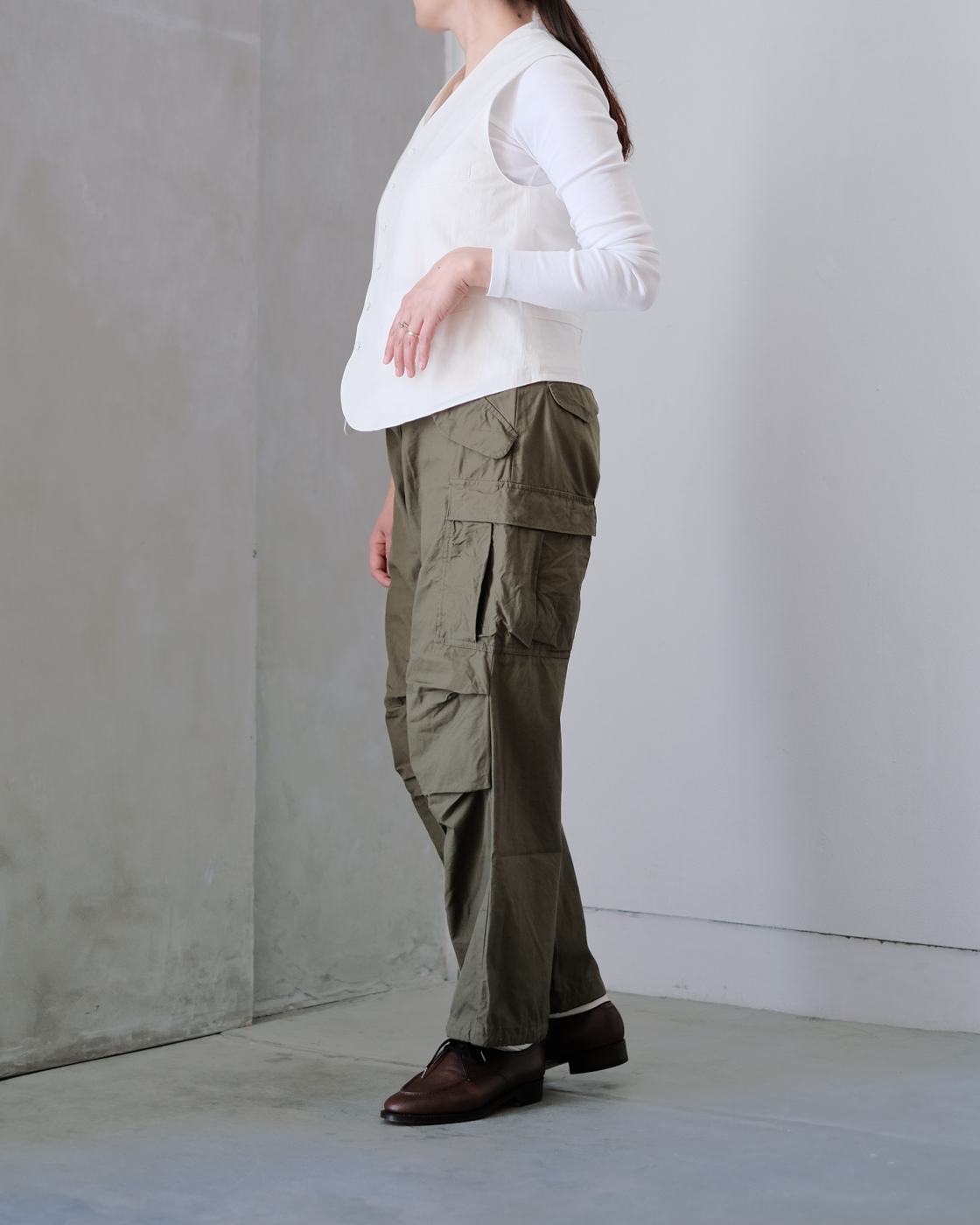 腰丈でジャケットと同様、コンパクトなサイズバランスが魅力的です。