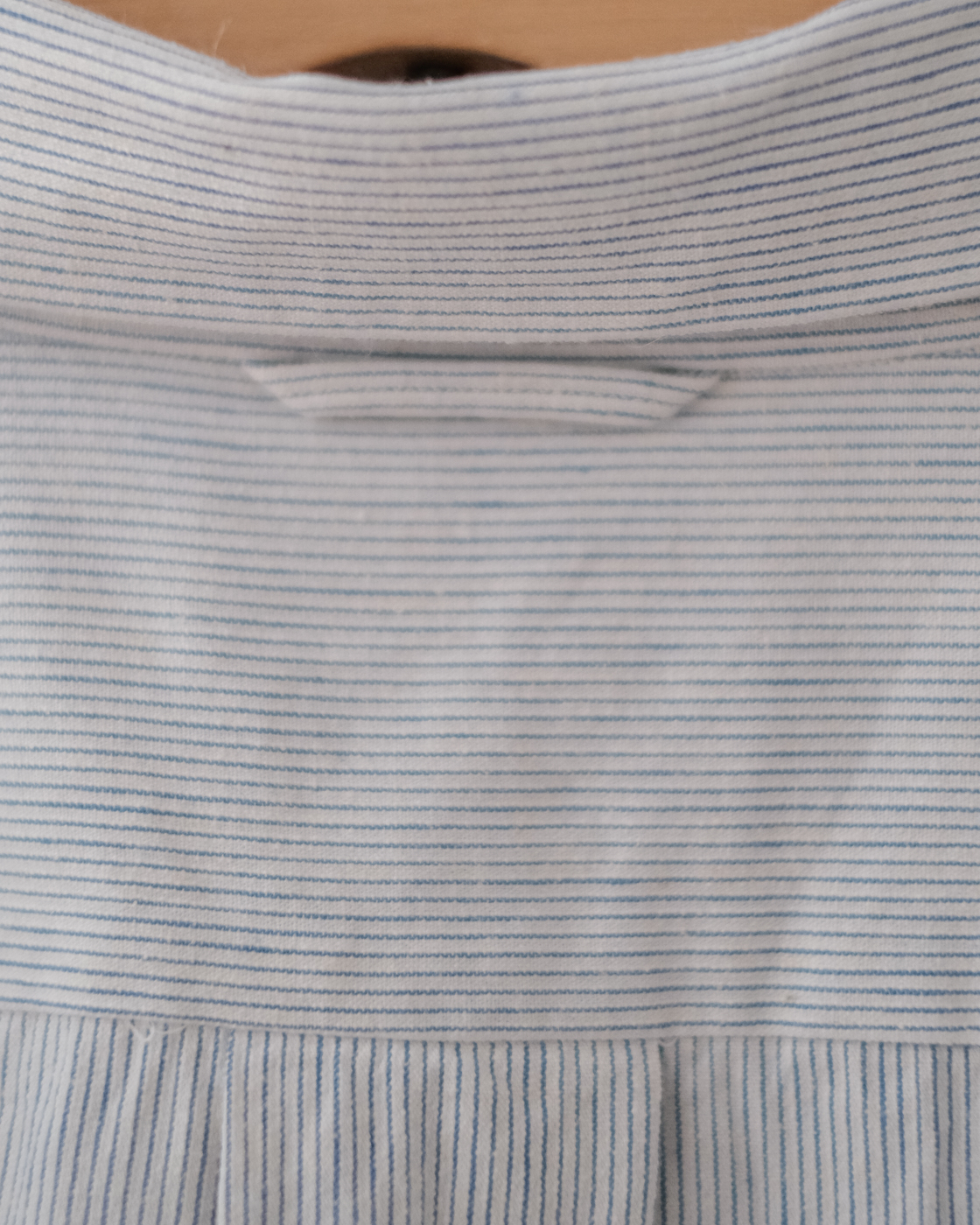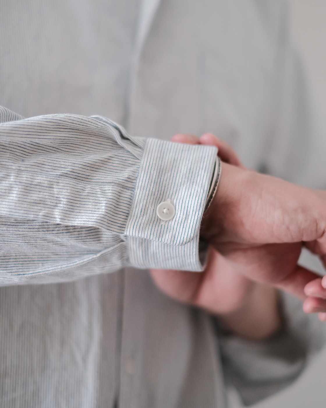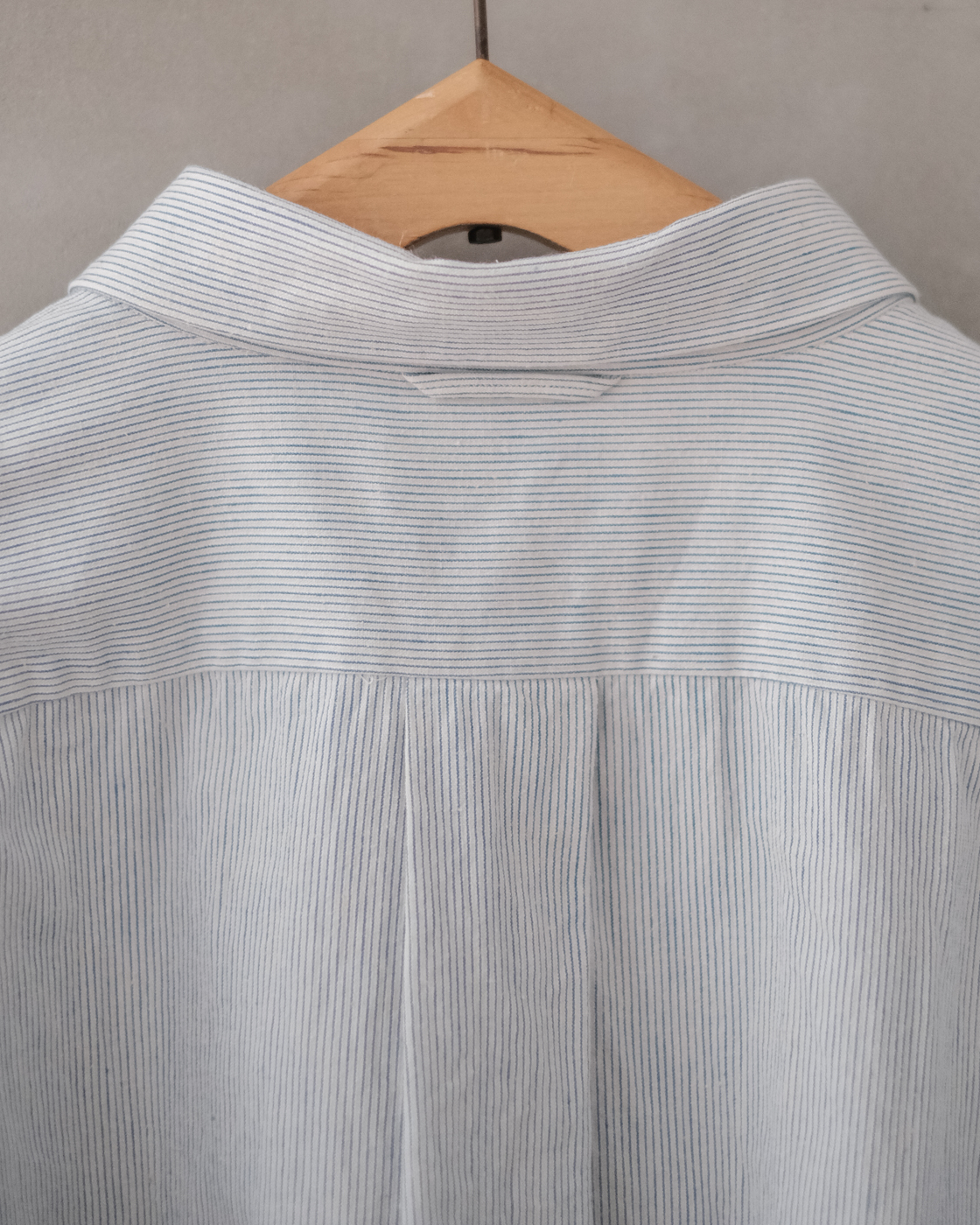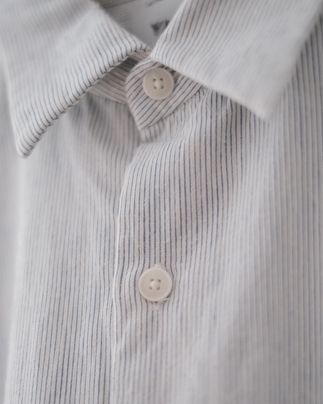 無染色の生成りをベースに線の様に繊細な細さで織られたYAECAオリジナルファブリックのペンシルストライプ。